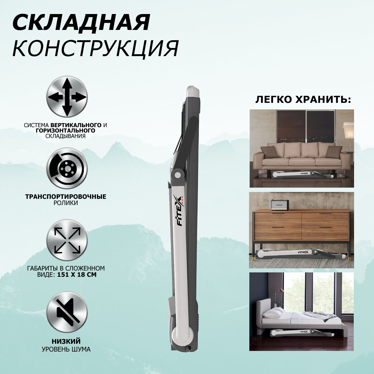 Беговая дорожка электрическая для дома Fitex DELUXE складная, беговое полотно 122х42 см, дорожка домашняя для бега, спорта и ходьбы