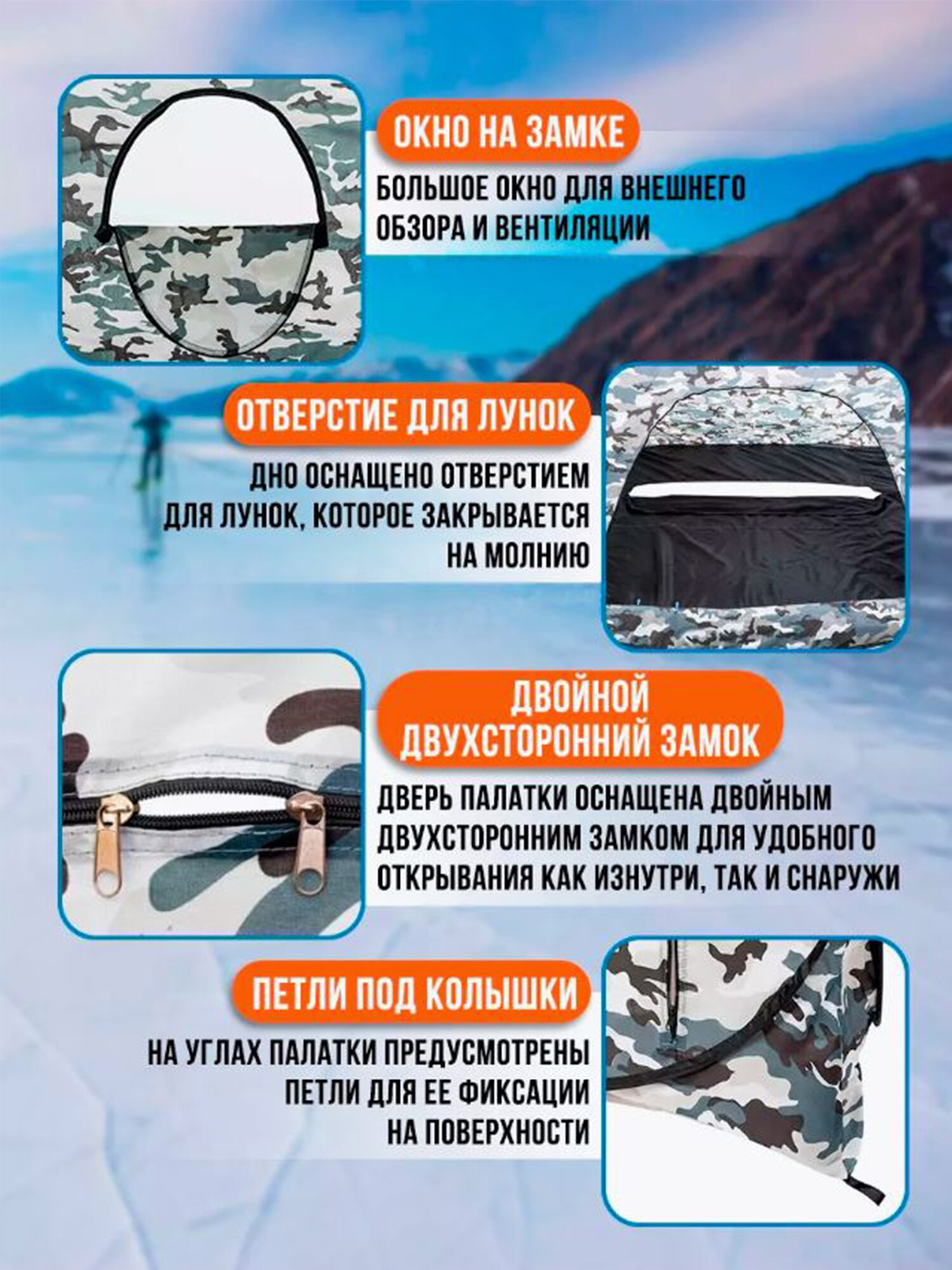Палатка для охоты и рыбалки, зимняя, 1,8x1,8х1,35 м, 3-местная, однослойная, сталь
