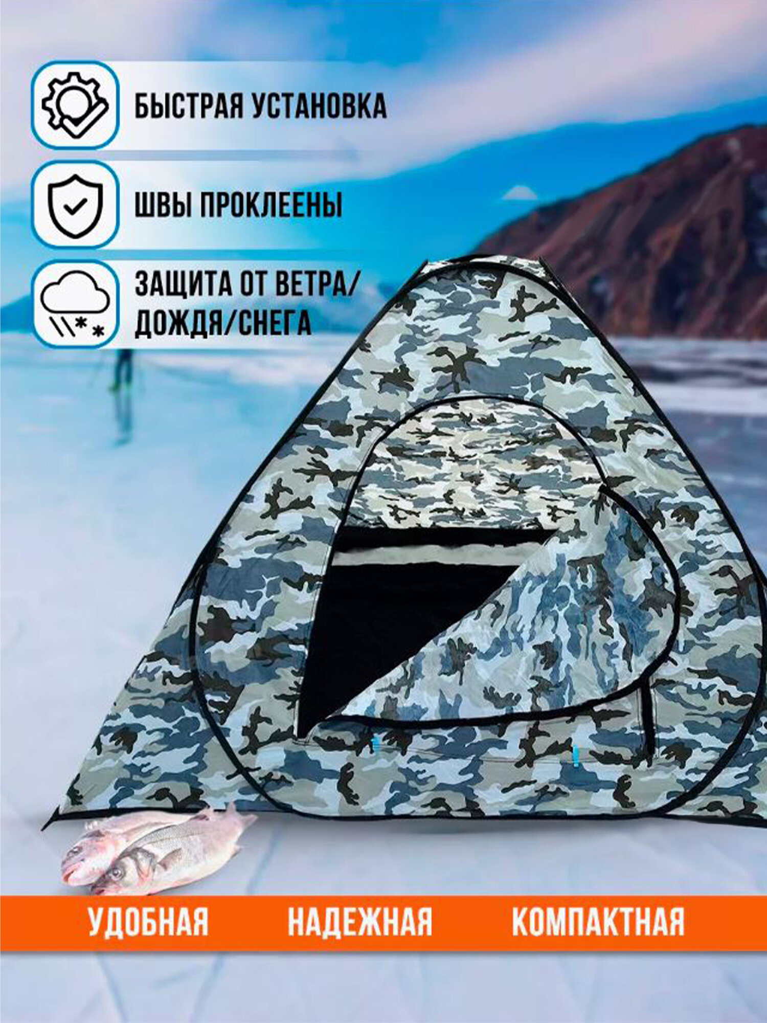 Палатка для охоты и рыбалки, зимняя, 2x2х1.35 м, 3-местная, однослойная, сталь