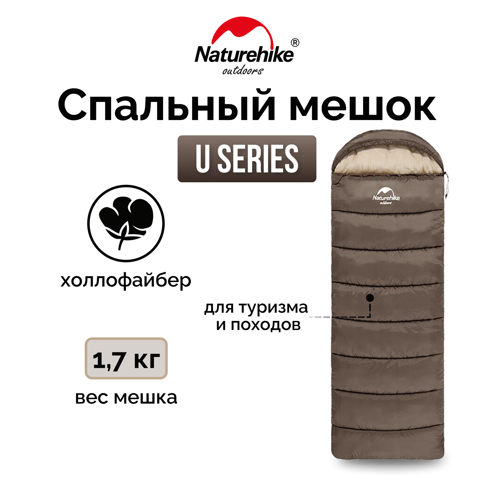 СохранитьСпальный мешок Naturehike NH20MSD07 U Series U350S, коричневый, 6927595764312 интересное: