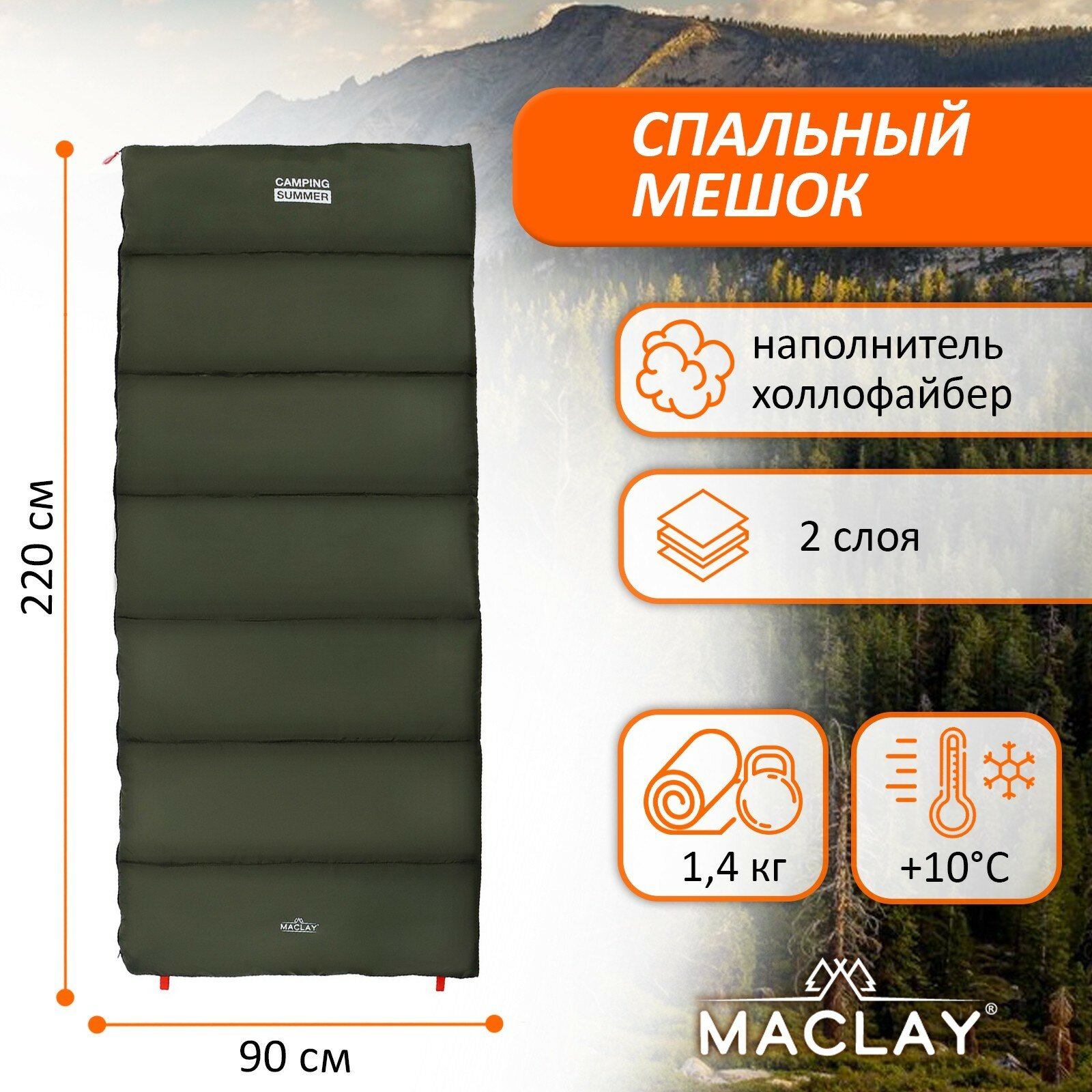 Maclay Спальный мешок maclay camping summer, одеяло, 2 слоя, правый, 220х90 см, +10/+25°С
