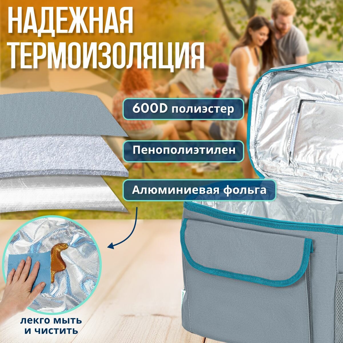 Термосумка холодильник для ланча и обеда переносная изотермическая 24 л, сумка для посуды походная интересное: