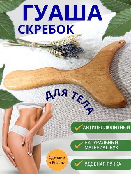 Антицеллюлитный деревянный скребок Гуаша для тела, натуральный бук, 29x15x2 см интересное: