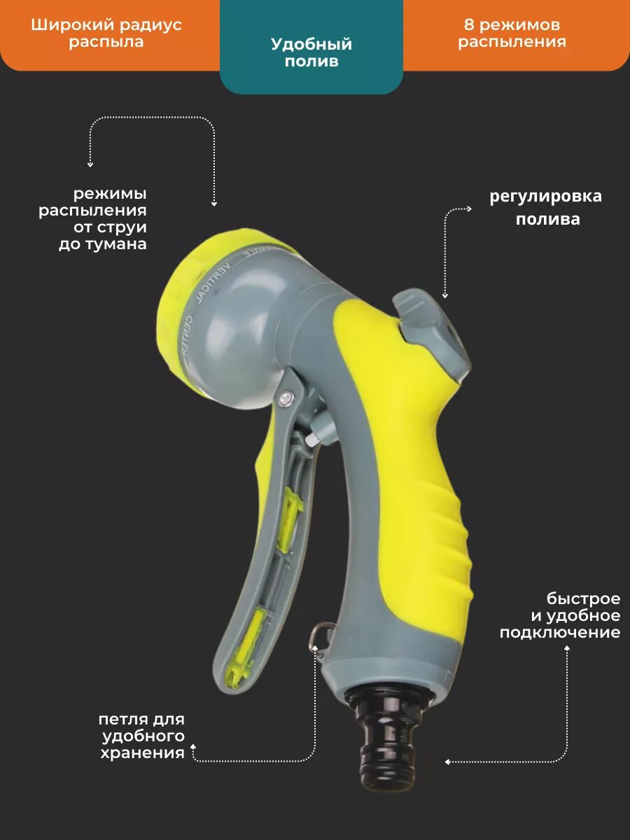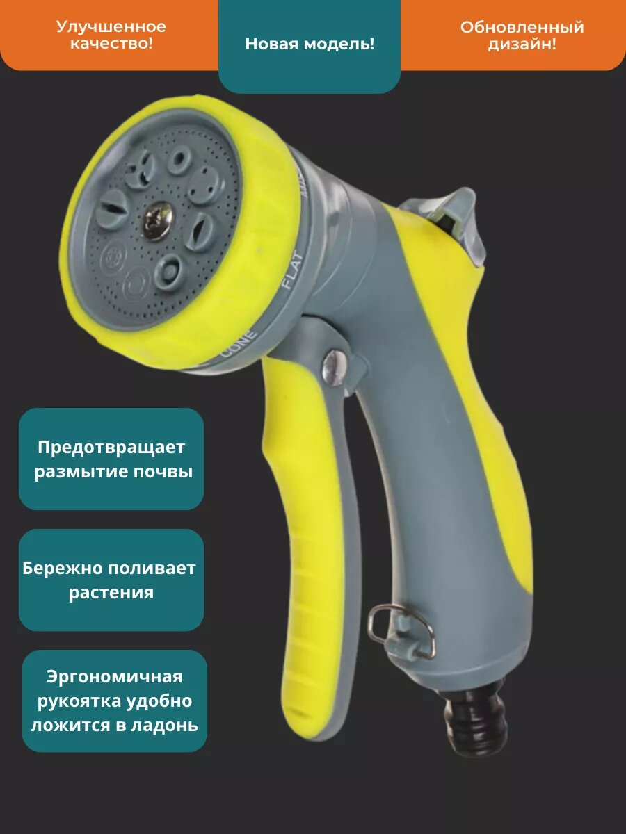 Пистолет-штанга садовый для полива INBLOOM BY, 8 режимов, регулировка давления, ABS+TPR+аллюм