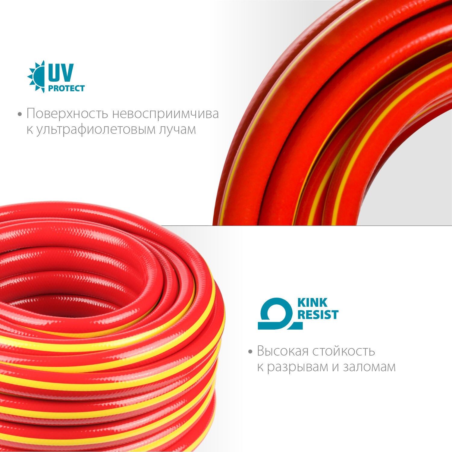 | Дополнительная информация | армирован полиамидными нитями; внутренняя поверхность исключает возможность возникновения водорослей; рабочее давление: 10 бар |