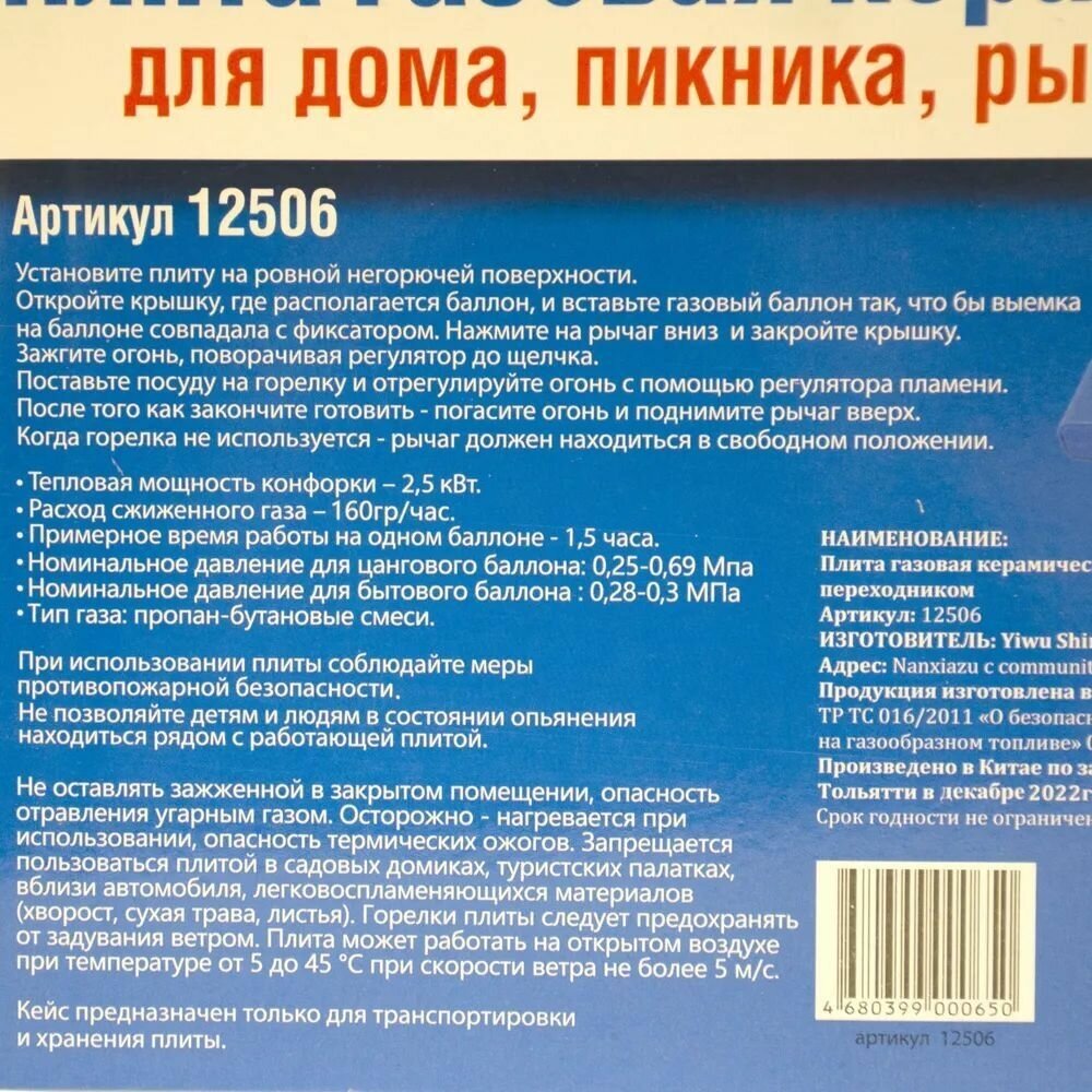 Ниже Вы можете прочитать отзывы на Плита газовая туристическая керамическая портативная с пьезоподжигом, с переходником для газовых бытовых баллонов МаякАвто в кейсе, походная 12506, ознакомится с подробными характеристиками, посмотреть интересные обзоры и фотографии на Плита газовая туристическая керамическая портативная с пьезоподжигом, с переходником для газовых бытовых баллонов МаякАвто в кейсе, походная 12506.