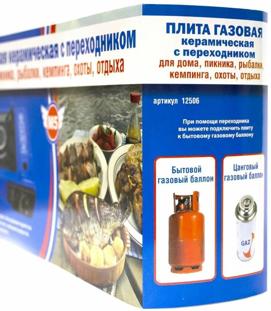 Плита газовая туристическая керамическая портативная с пьезоподжигом, с переходником для газовых бытовых баллонов МаякАвто в кейсе, походная 12506 интересное: