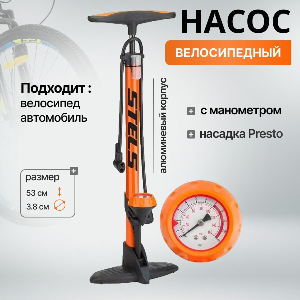 Купить Насос STELS ZF-037 ручной стационарный, с манометром, алюминиевый