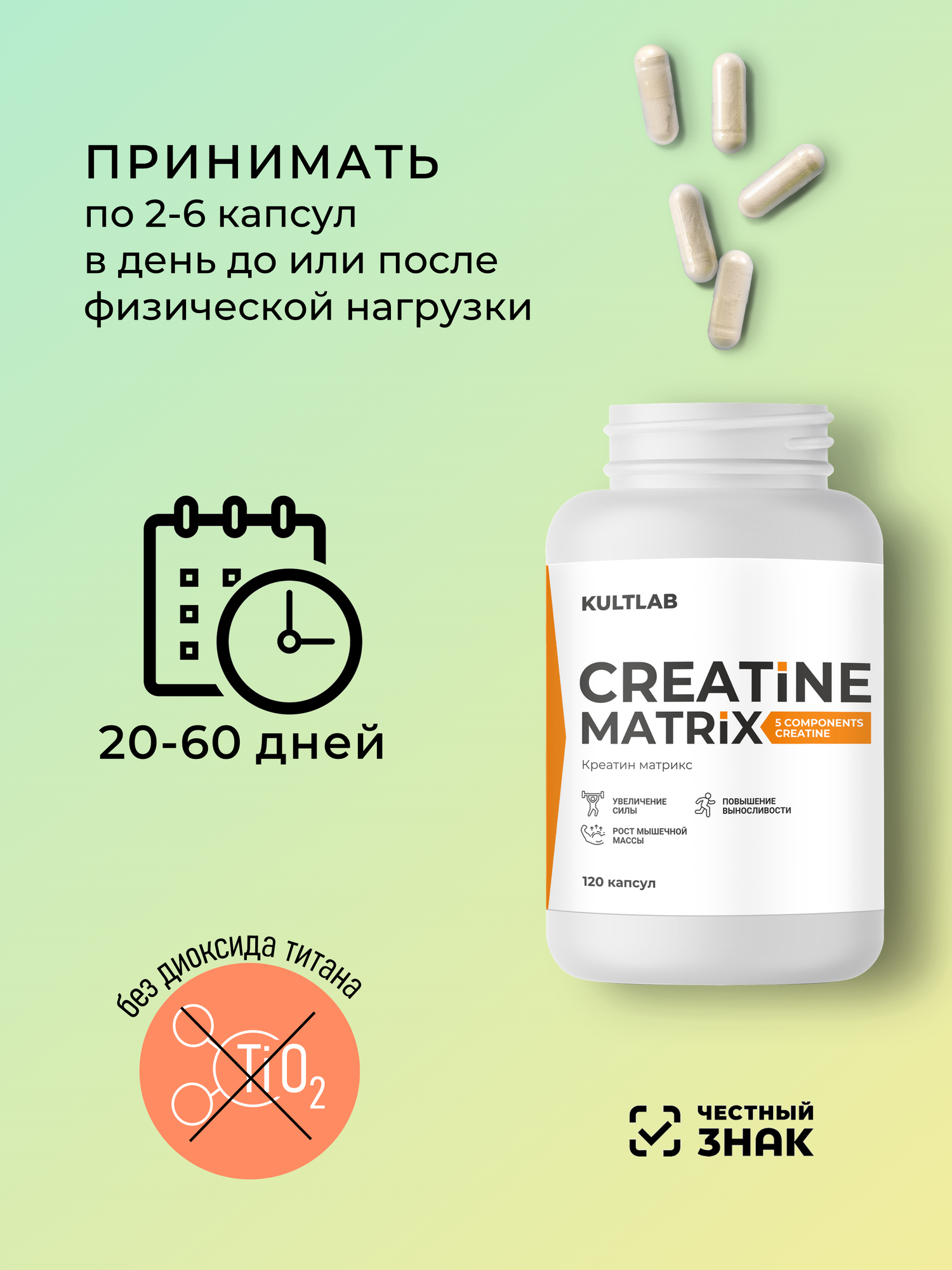 Креатиновый комплекс Creatine matrix от КультЛаб, 5 типов креатина для силы, энергии и выносливости, 120 капсул интересное:
