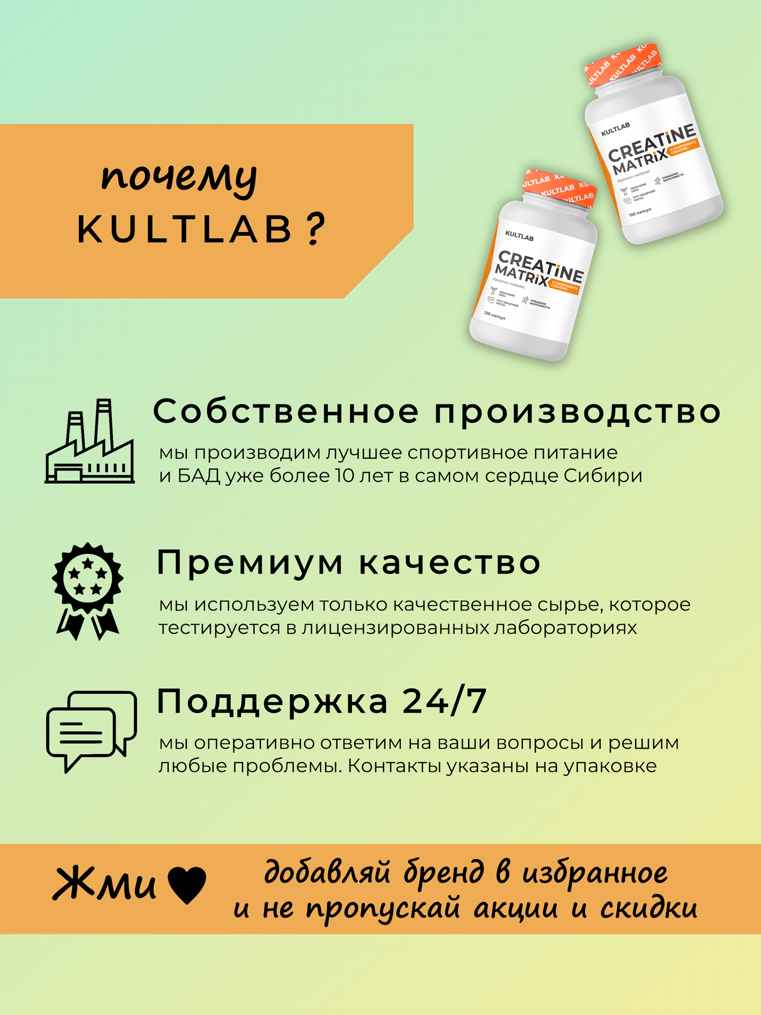 Ниже Вы можете прочитать отзывы на Креатиновый комплекс Creatine matrix от КультЛаб, 5 типов креатина для силы, энергии и выносливости, 120 капсул, ознакомится с подробными характеристиками, посмотреть интересные обзоры и фотографии на Креатиновый комплекс Creatine matrix от КультЛаб, 5 типов креатина для силы, энергии и выносливости, 120 капсул.