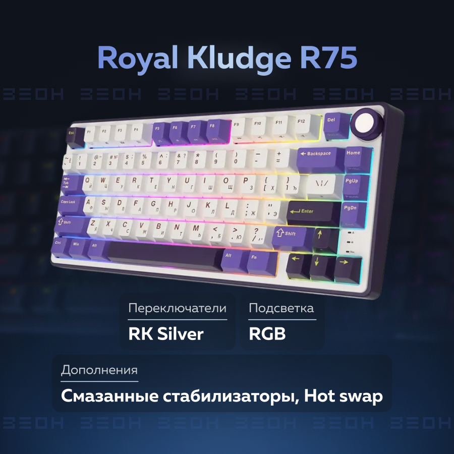 Клавиатура ROYAL KLUDGE R75 механическая компактная (75%) 81 клавиша, проводная, Gasket Mount, цвет Phantom (switch RK Silver)