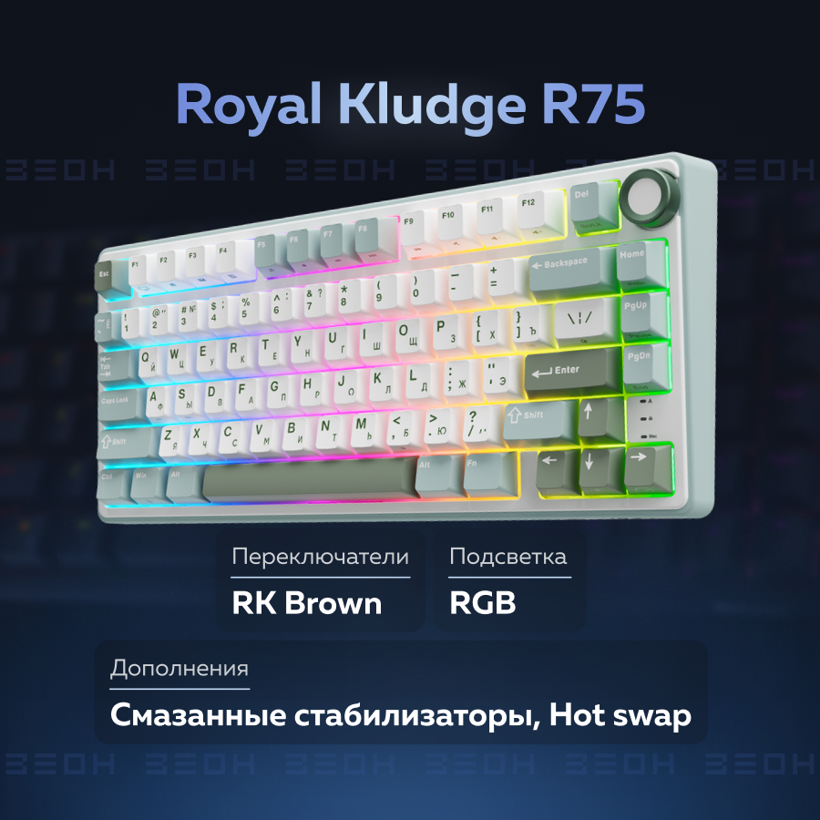 Компактная (75%) механическая клавиатура Royal Kludge R75 - проводная , 81 клавиша, Gasket Mount, Sk