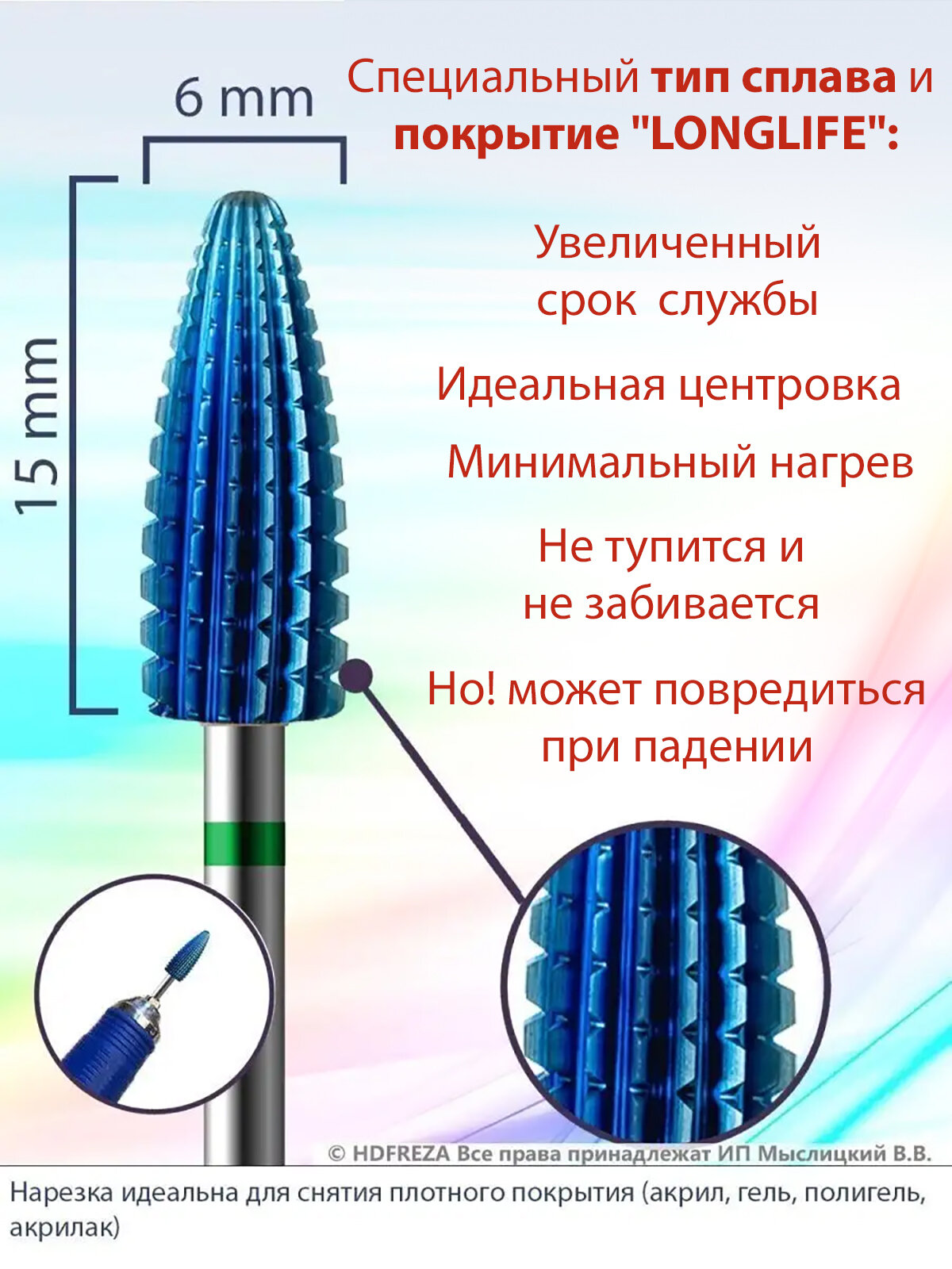 Фреза для маникюра и педикюра HDFREZA твердосплавная реверсивная для снятия покрытия 508B 275 176 060R Средняя синяя конус d-6.0