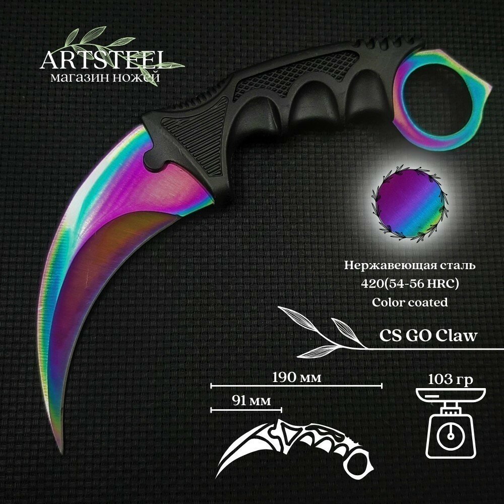 Керамбит ArtSteel CS GO, нержавеющая сталь 420, титановое покрытие, пластик/резина, фиолетовый
