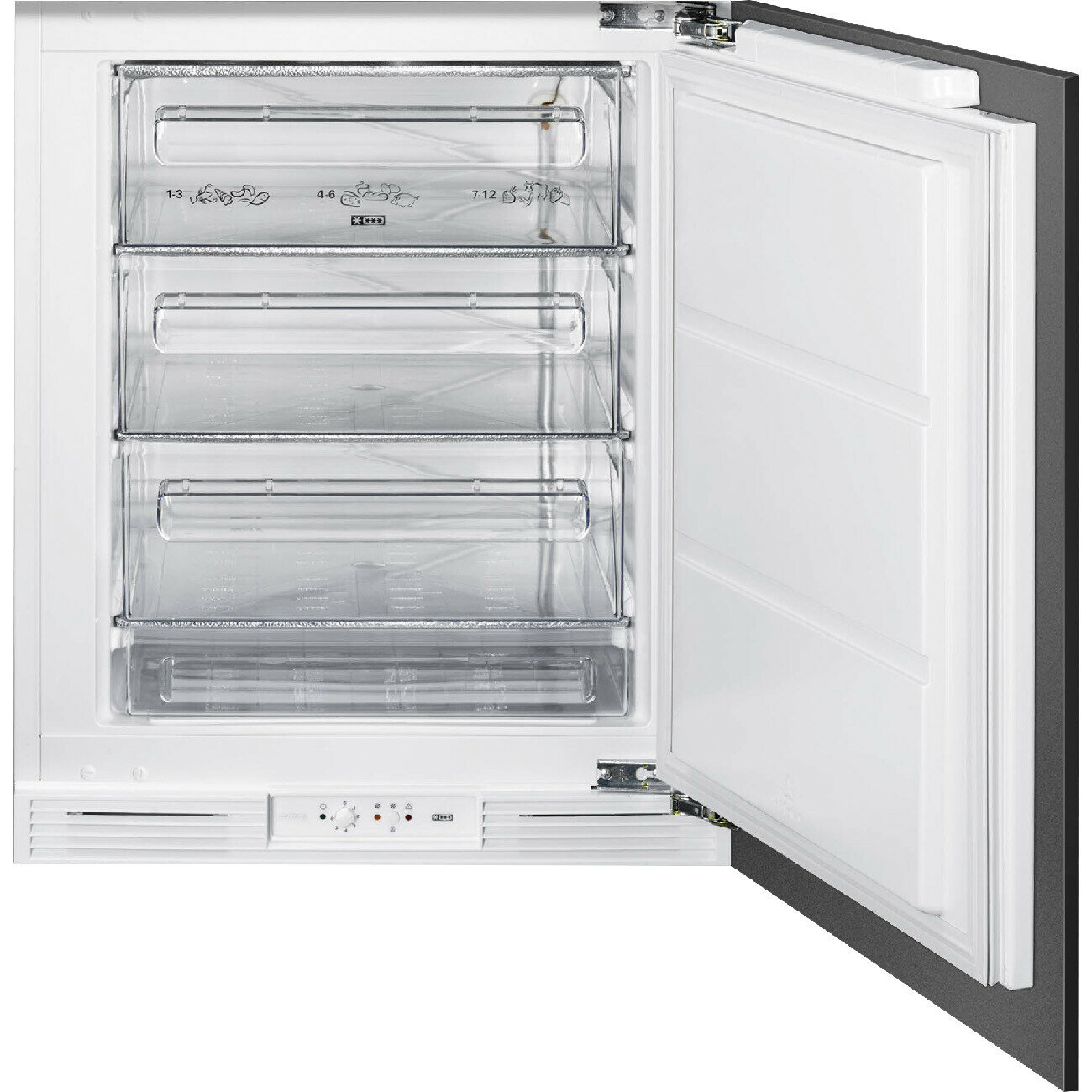 Морозильная камера Smeg встраиваемая под столешницу, полезный объем 95 л, электромеханический контроль температуры, световая индикация, стан
