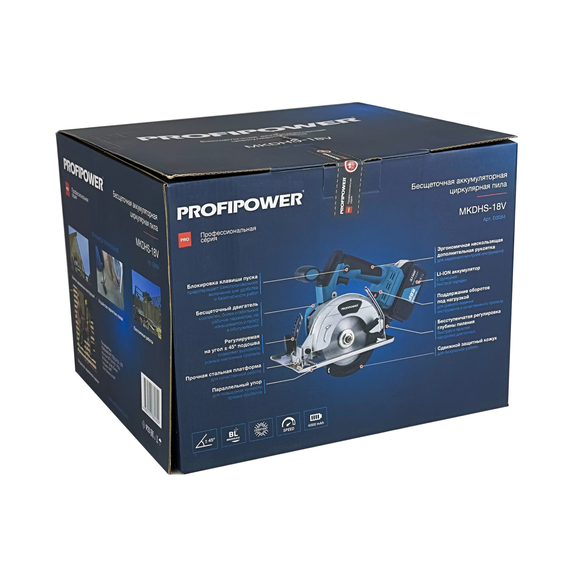 Пила циркулярная ProfiPower DHS-18V аккумуляторная бесщеточная (18В, Li-ion-1шт, 4.0Ач, 140мм, 6700об/мин, З/У, коробка)