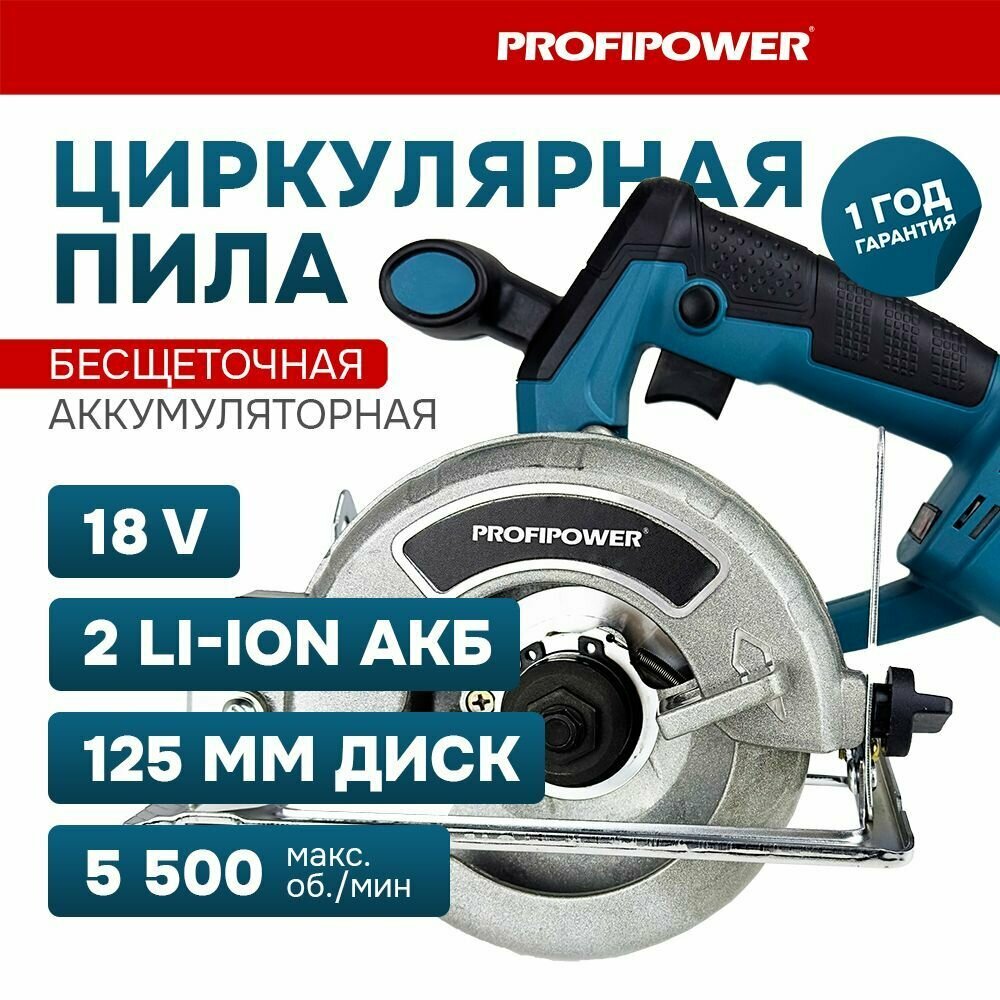 Аккумуляторная пила циркулярная бесщеточная ProfiPower DHS-18V (18В, Li-ion-1шт,4.0Ач,140мм,6700об/мин, З/У, в коробке)