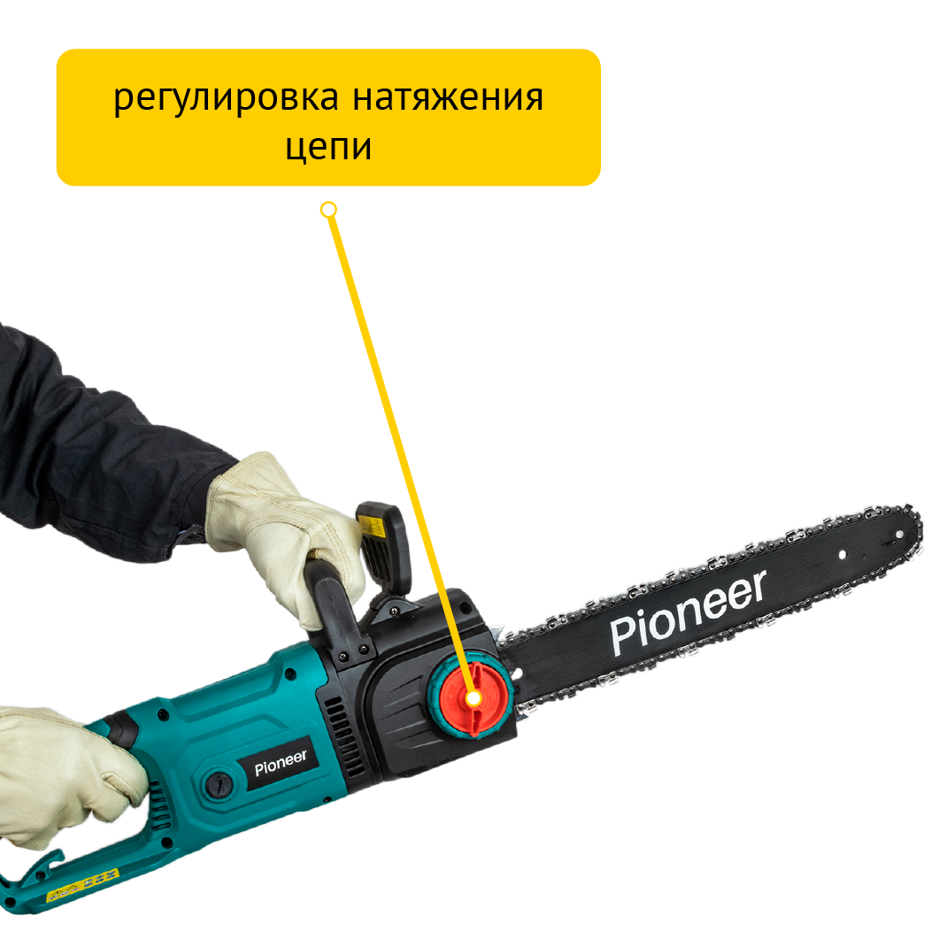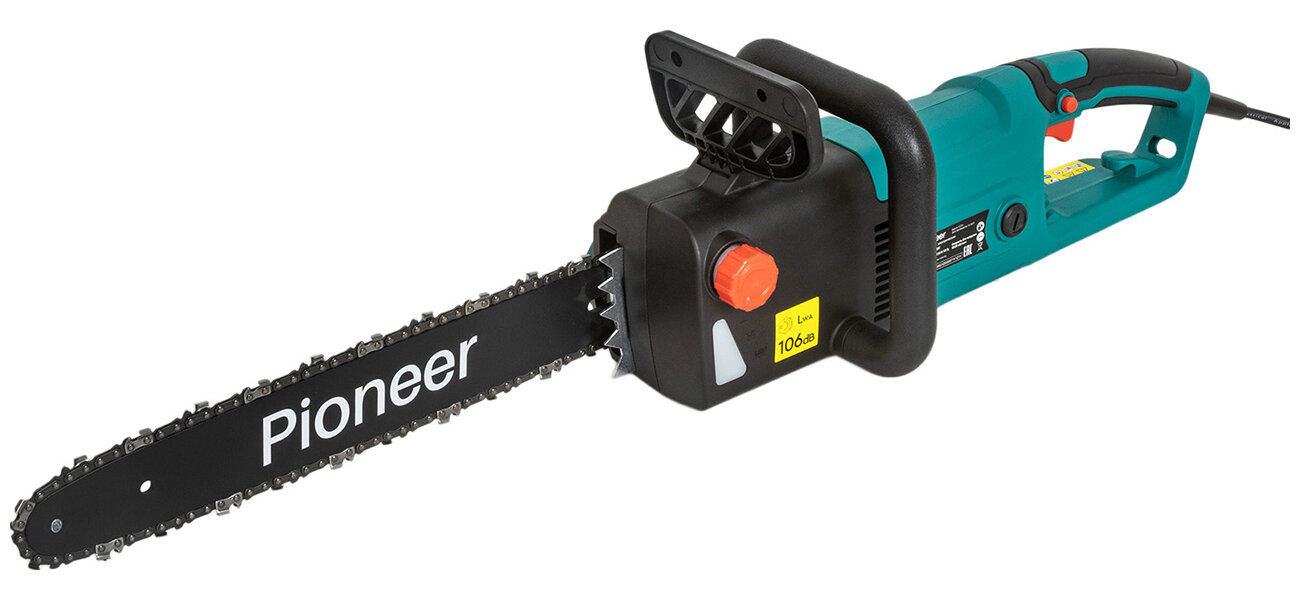Пила цепная сетевая Pioneer, длина шины 40 см, шаг цепи 3/8 дюйм, 56 звен, ECS-2200-16V, 220-230 В, 64 см, 19737 интересное: