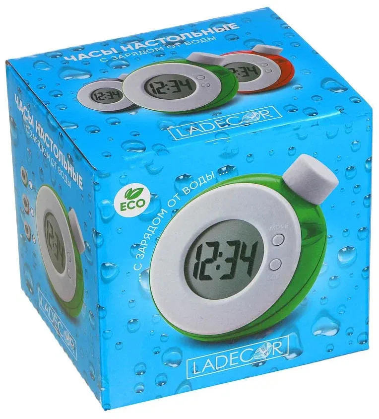 Часы LADECOR CHRONO 529-205 настольные ЭКО с зарядом от воды красные интересное: