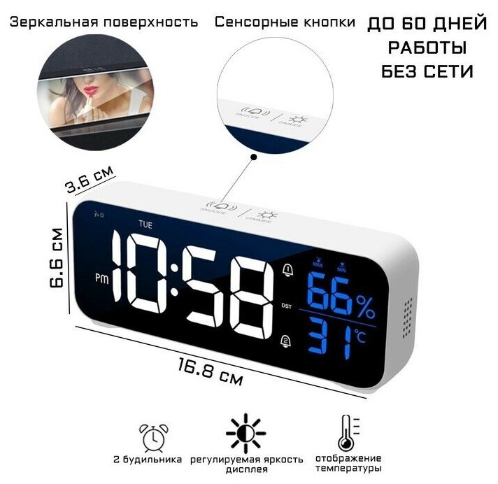 Часы - будильник электронные настольные: календарь, термометр, гигрометр, 16.8 x 6.6 см интересное: