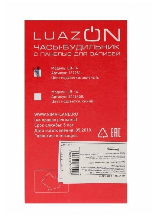 Часы - будильник Luazon LB-16 "Послание", с маркером, подсветка зеленого цвета, белый