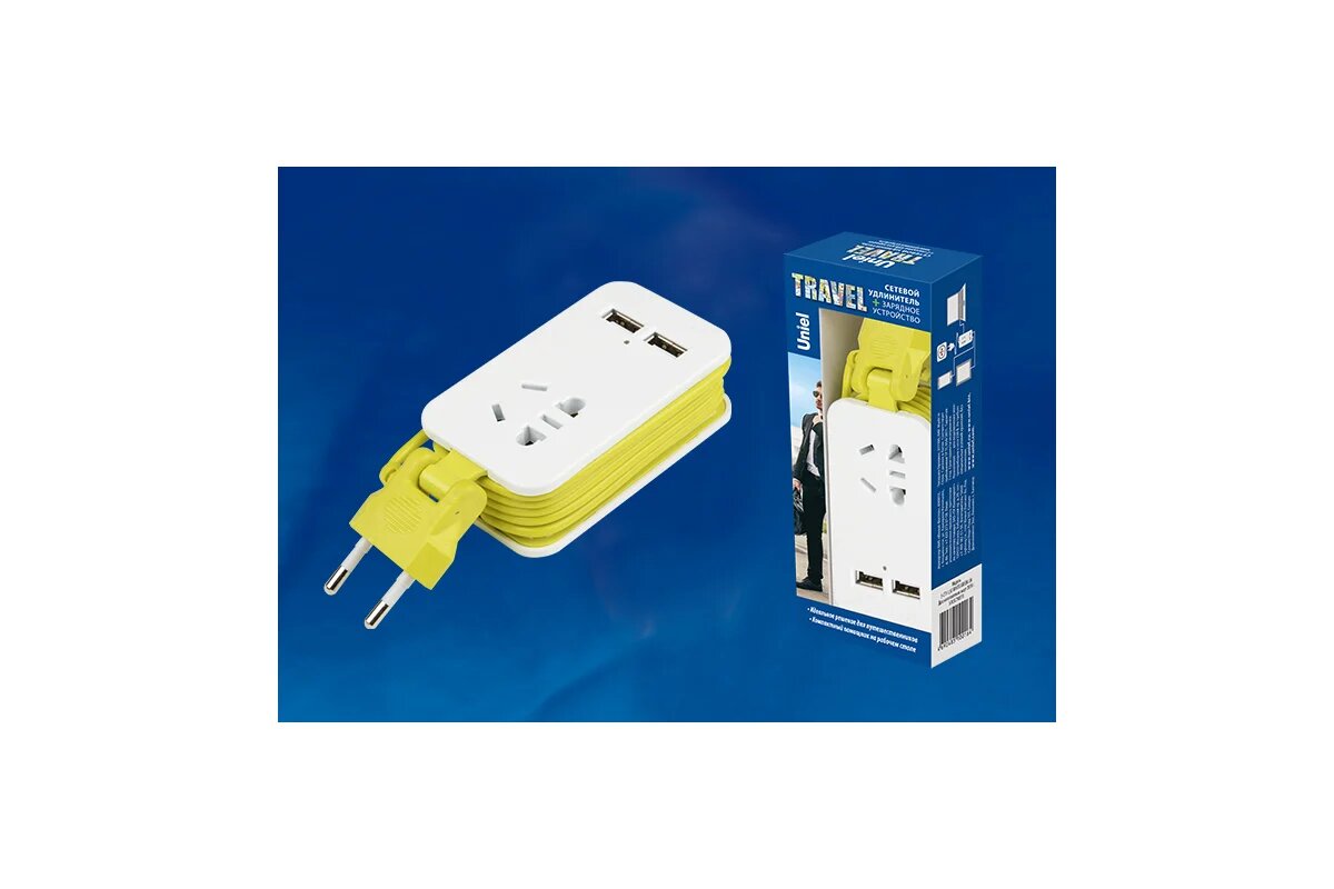 Удлинитель Uniel Travel S-CT1-1,5U white/green LM, 1 розетка, б/з 500 Вт 1 2 1.3 м 110 мм 50 мм 50 мм разноцветный