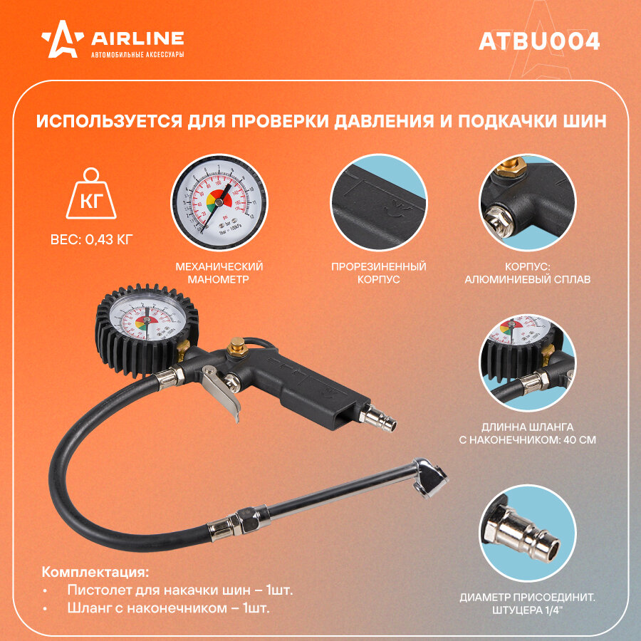Пистолет для накачки шин грузовой 12 АТМ с манометром ATBU004 AIRLINE интересное:
