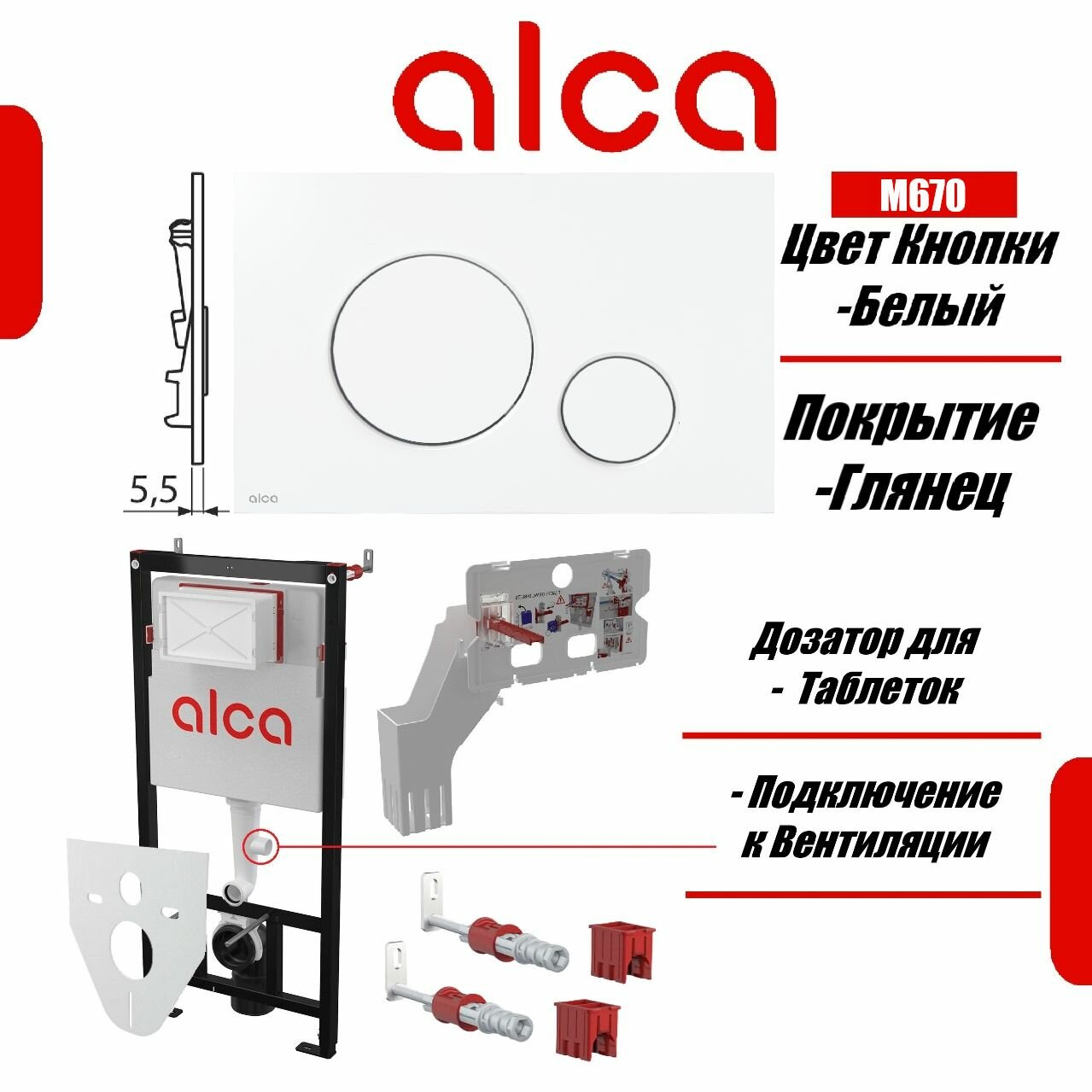 Инсталляция AlcaPlast AM101/1120 4 в 1 для унитаза с кнопкой смыва M670, белый