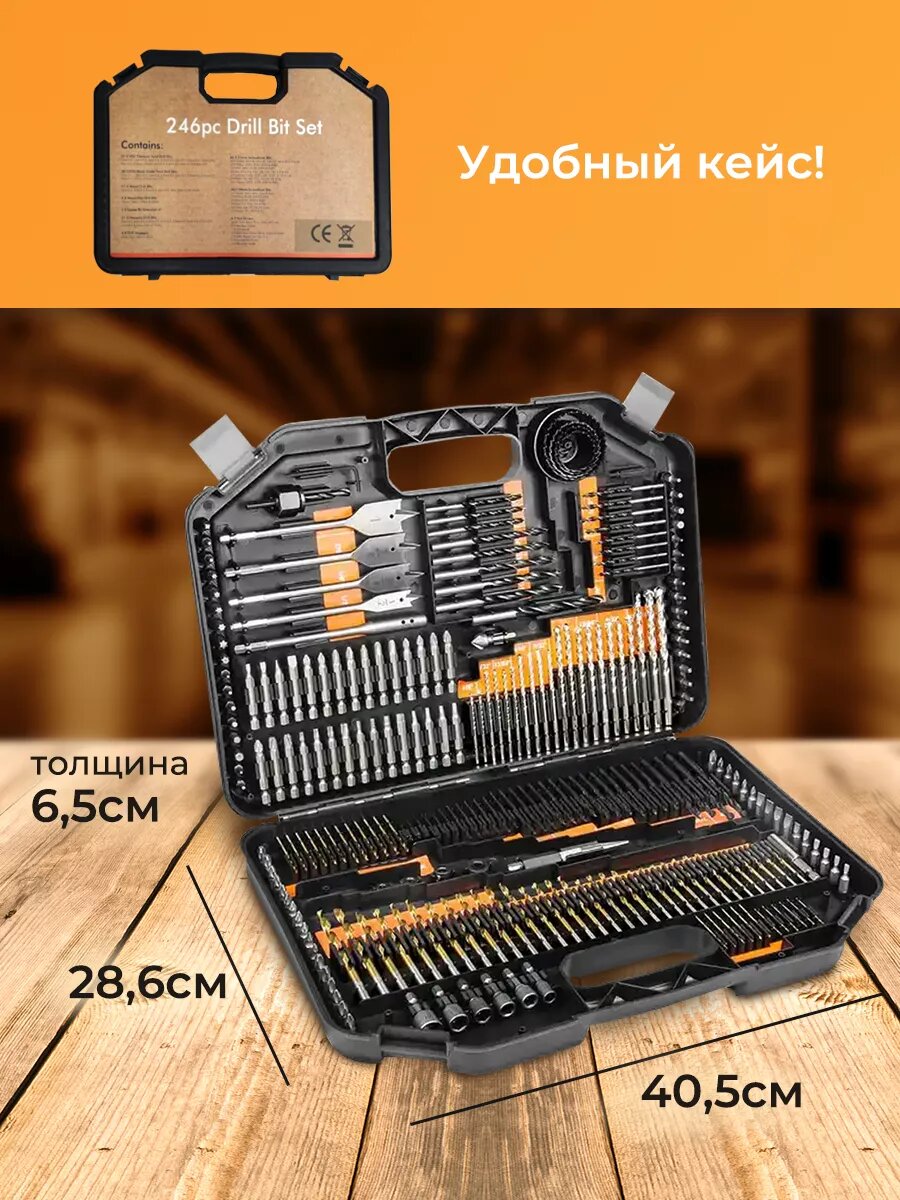 Набор бит и сверл по дереву, металлу, бетону в кейсе, 246 предмета для инструментов