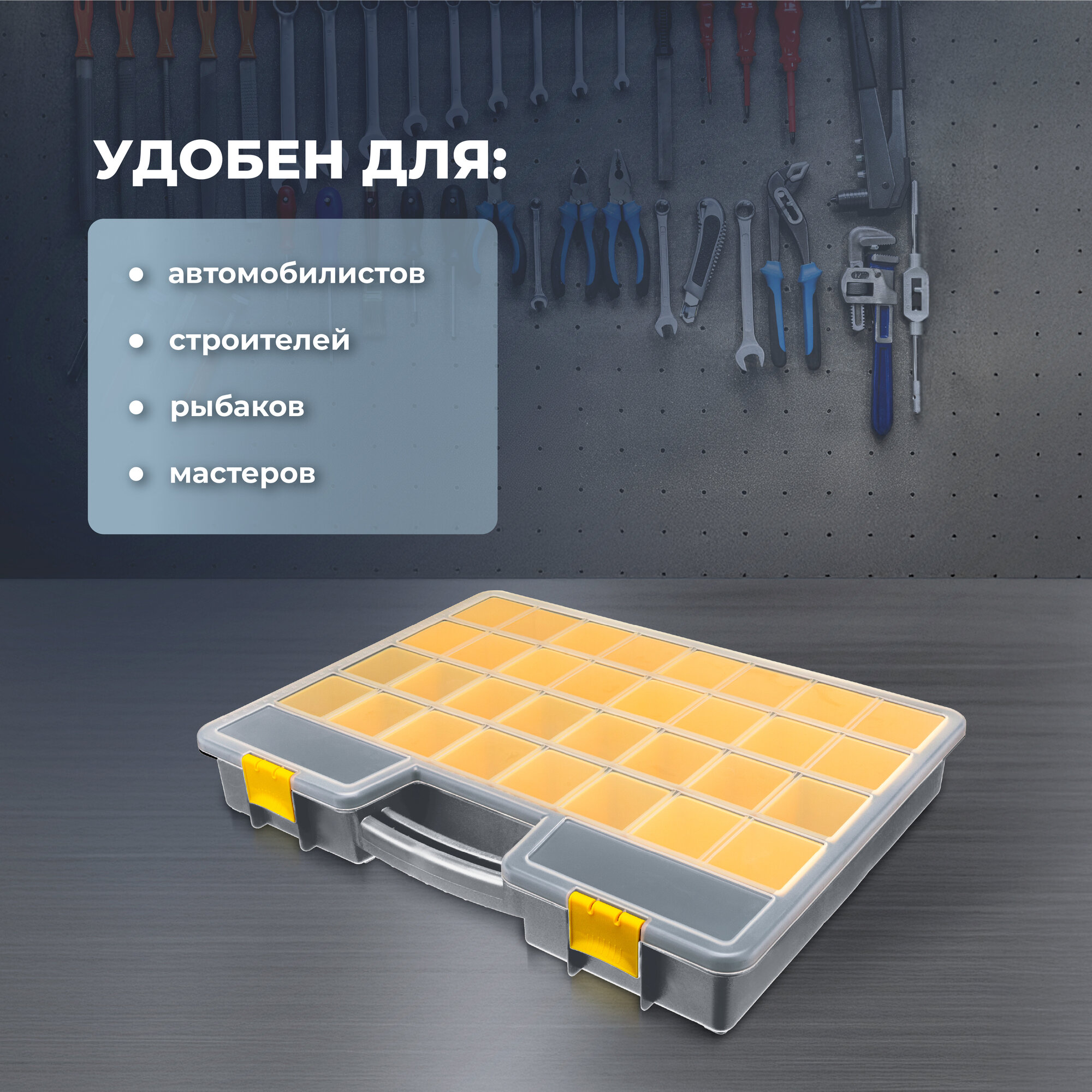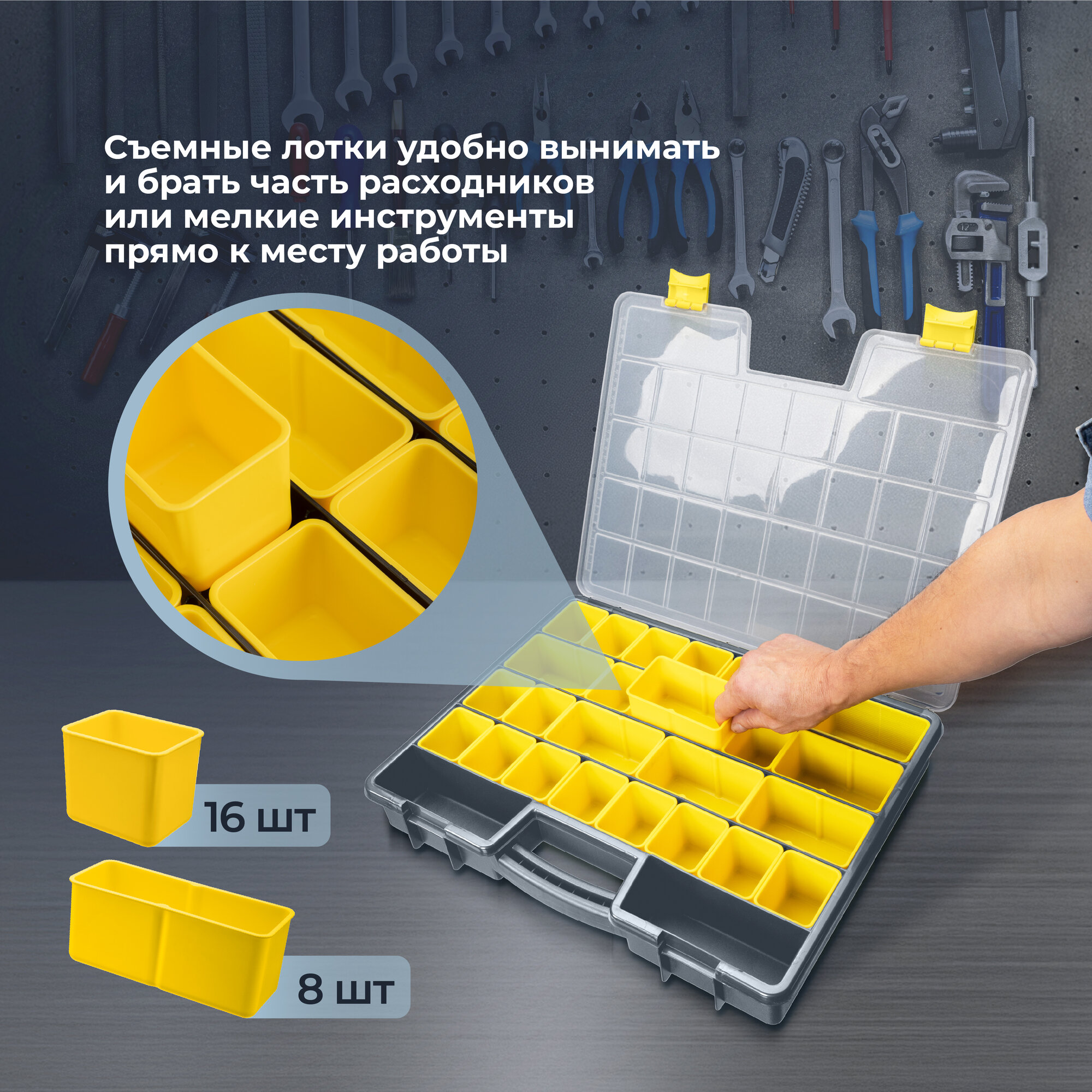 Органайзер с замком и ручками "WORKER PRO 19", 480х370х70 мм, серый интересное: