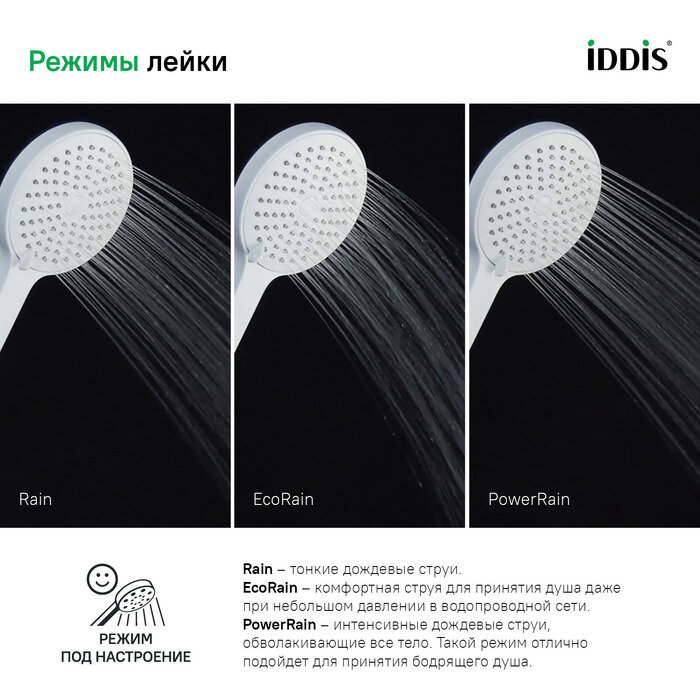 Лейка для душа IDDIS Ray RAY3F0Wi18 белая матовая 3 режима круглая интересное: