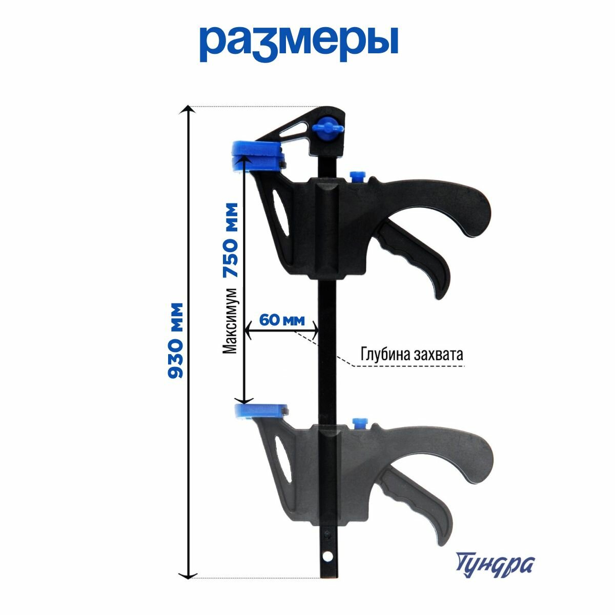 Струбцина быстрозажимная тундра, F-образная, 750 х 60 х 930 мм