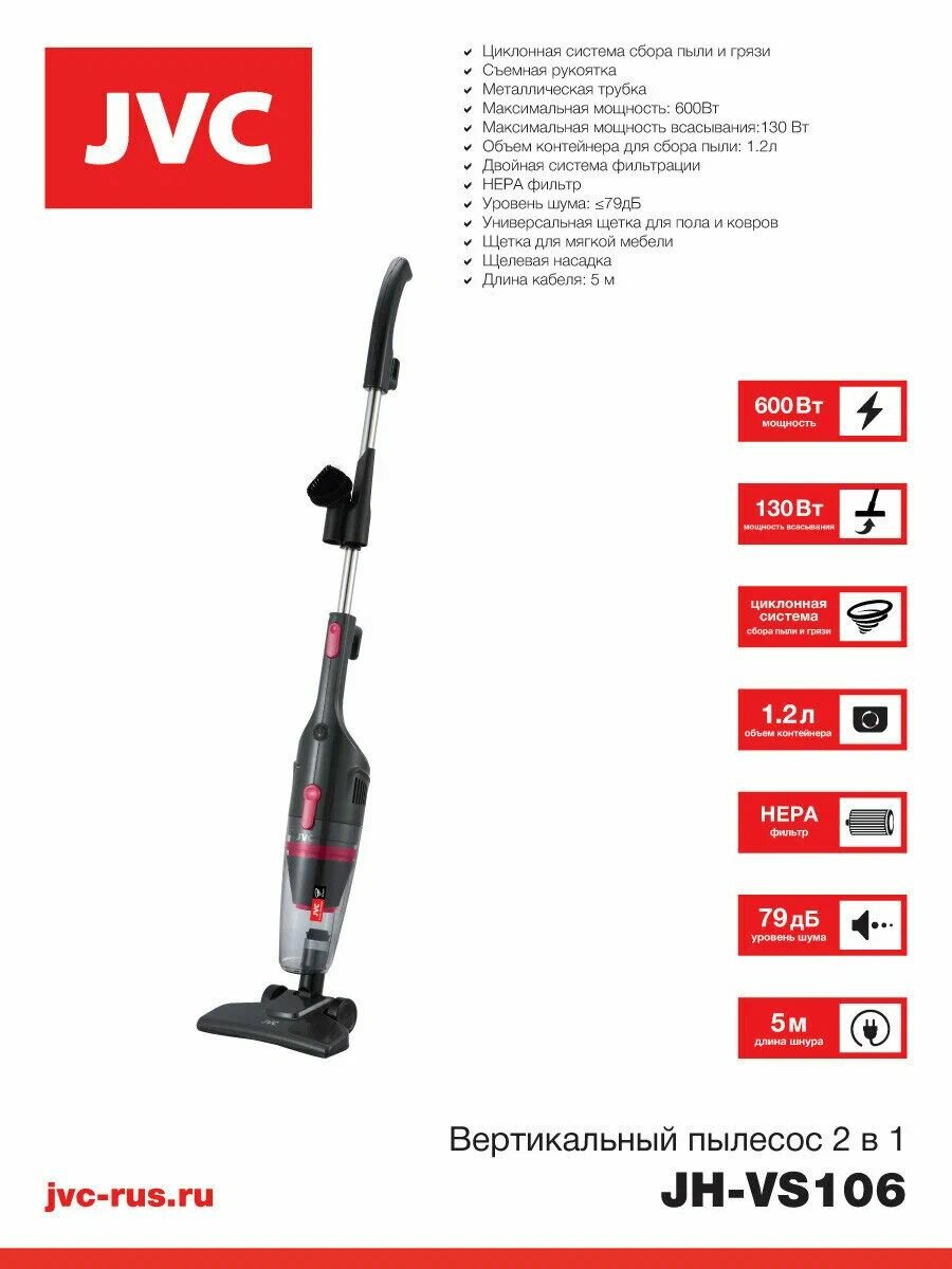 Вертикальный пылесос jvc JH-VS106 интересное: