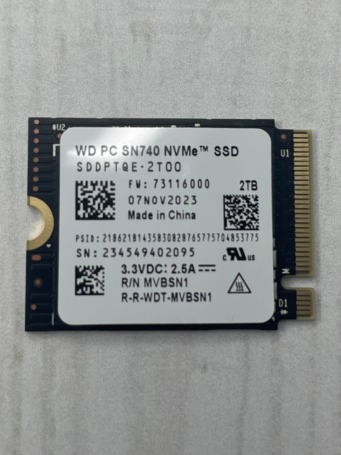 1ТБ SSD Western Didgital SN740 2230 PCIe 4.0 NVME для Steam Deck, Asus rog Ally, Surface laptop