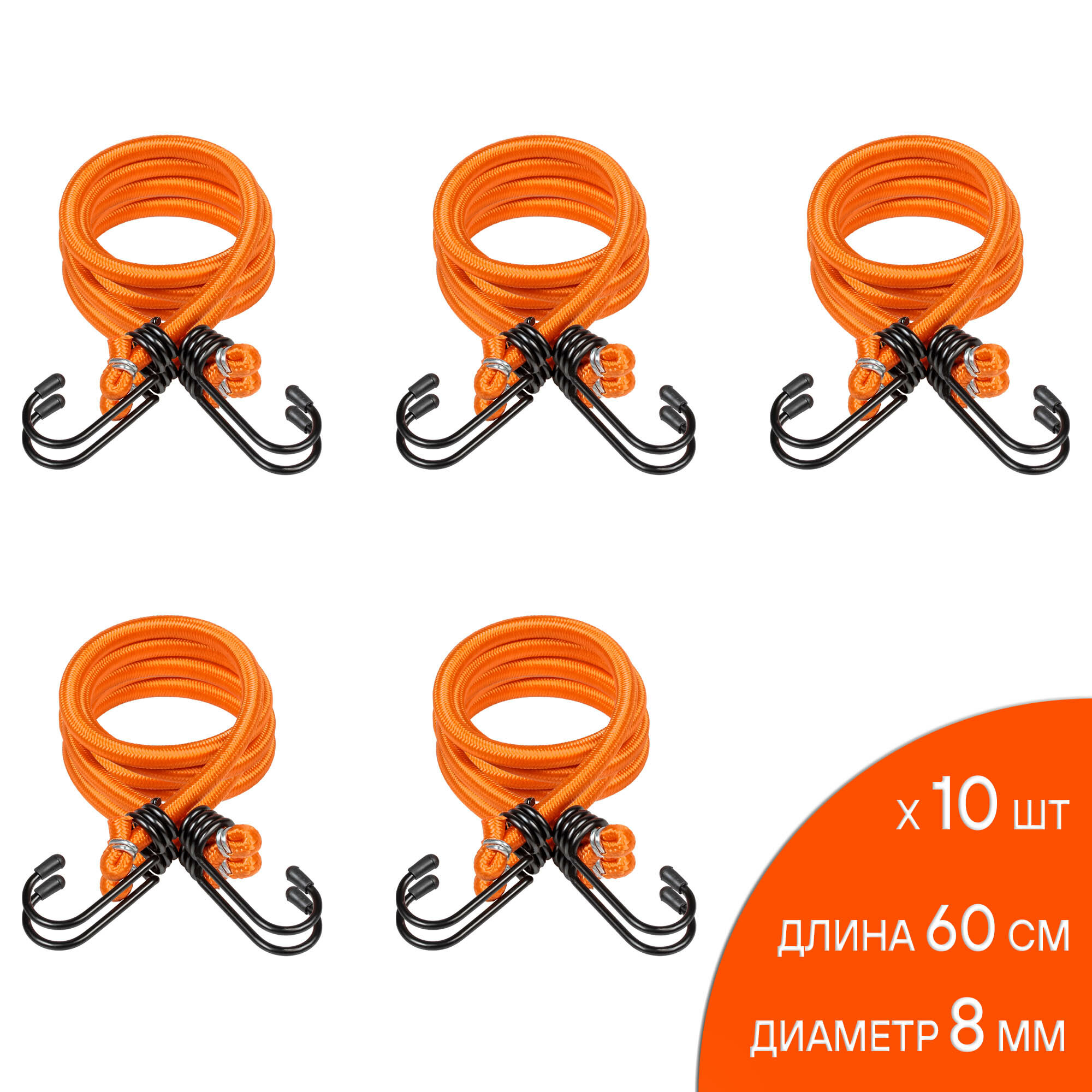 Стяжка для груза 8мм x60см (10 шт) металлические крючки (Airline)