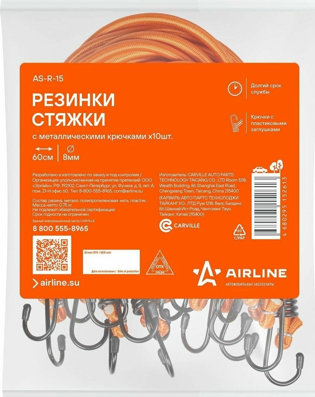 Резинки-стяжки набор 10 шт. 60 см, D-8 мм (металлические крючки) AS-R-15 AIRLINE интересное: