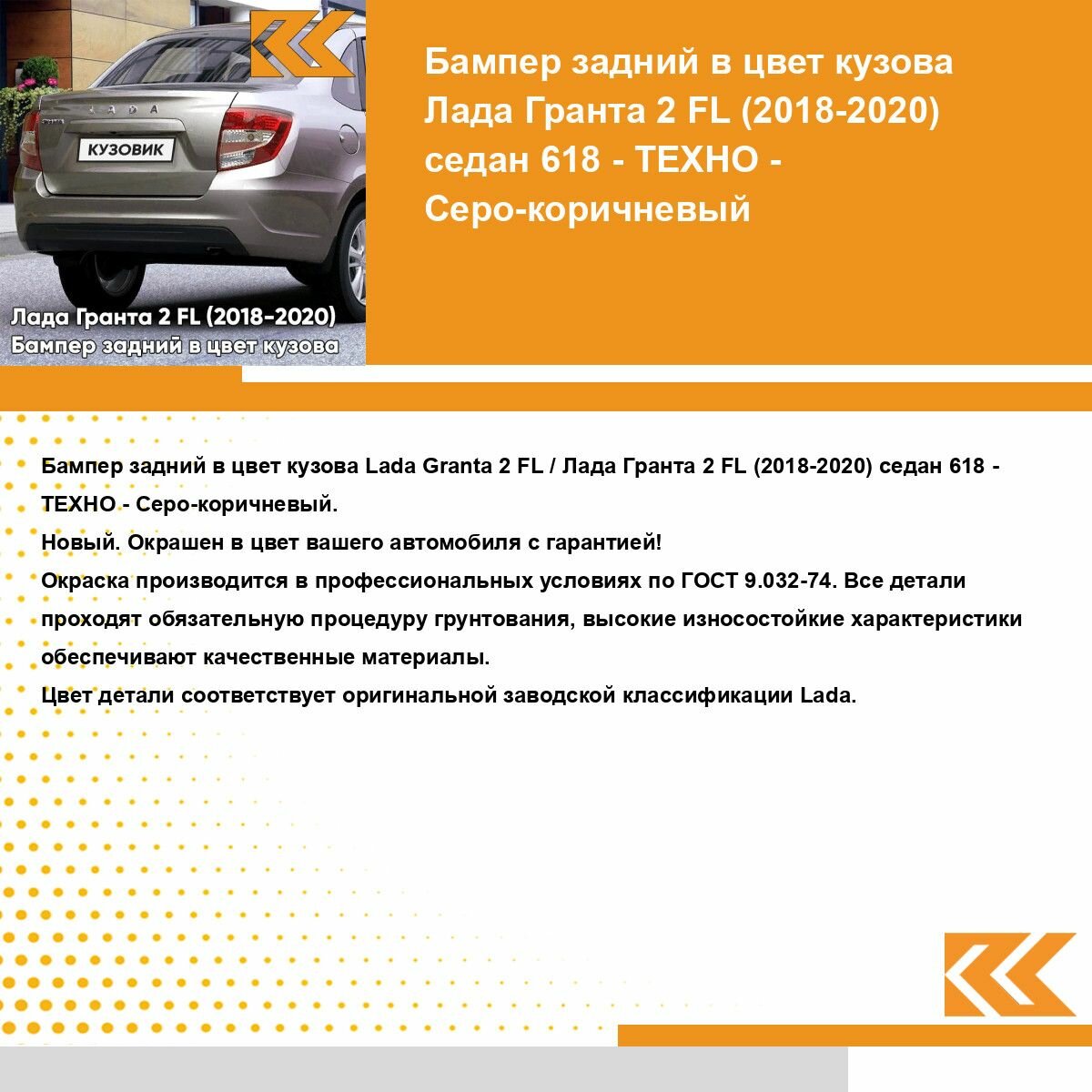 Купить Бампер задний в цвет кузова для Лада Гранта 2 ФЛ FL (2018-) седан 618 - техно - Серо-коричневый