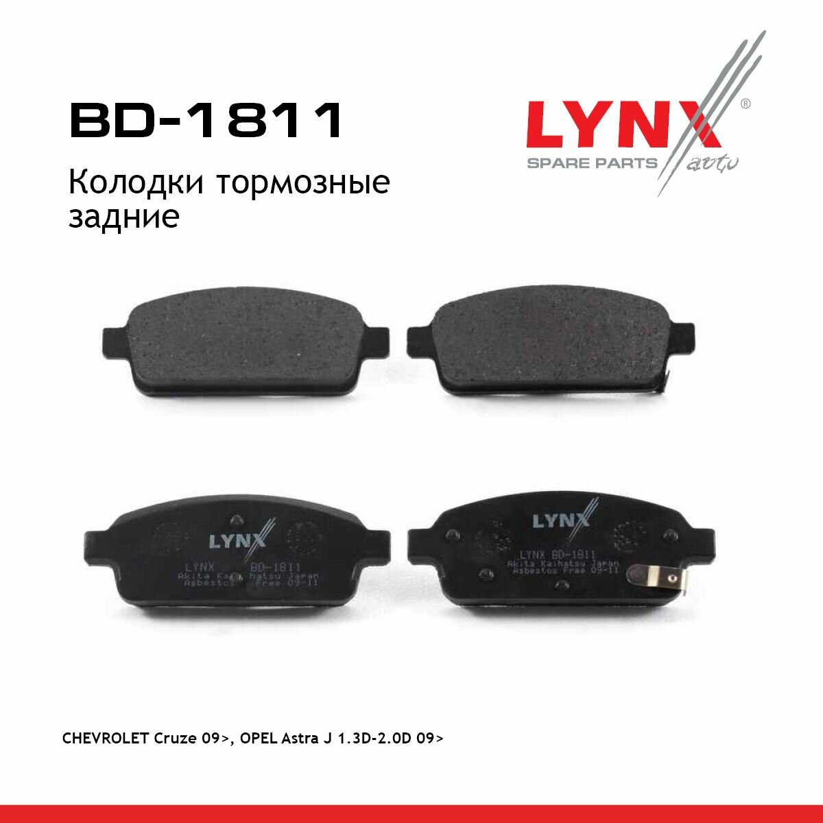 BD1811 LYNXAUTO Колодки тормозные задние CHEVROLET Cruze 09> OPEL Astra J 1.3D-2.0D 09>