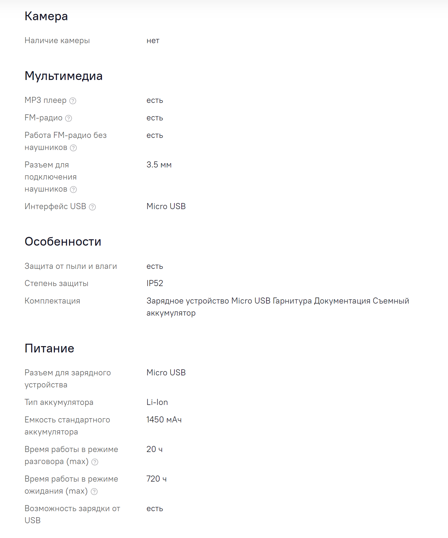 | Тип разъема для зарядки | micro-USB |