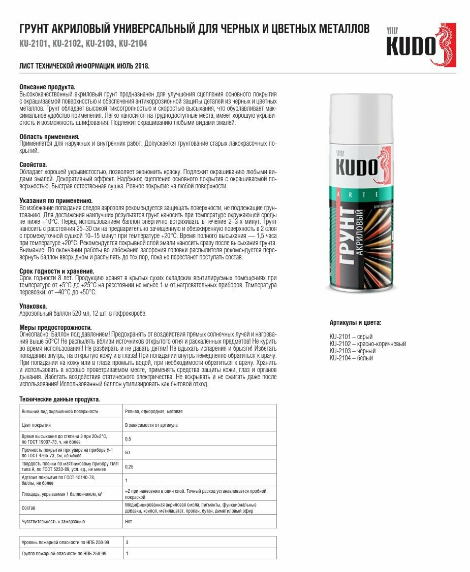 Ниже Вы можете прочитать отзывы на Грунт серый акриловый 520мл, KU-2101, KUDO, ознакомится с подробными характеристиками, посмотреть интересные обзоры и фотографии на Грунт серый акриловый 520мл, KU-2101, KUDO.