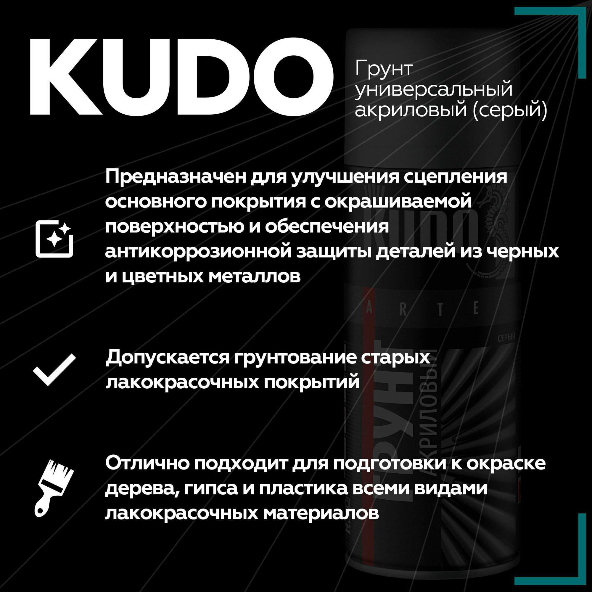 Грунт серый акриловый 520мл, KU-2101, KUDO интересное: