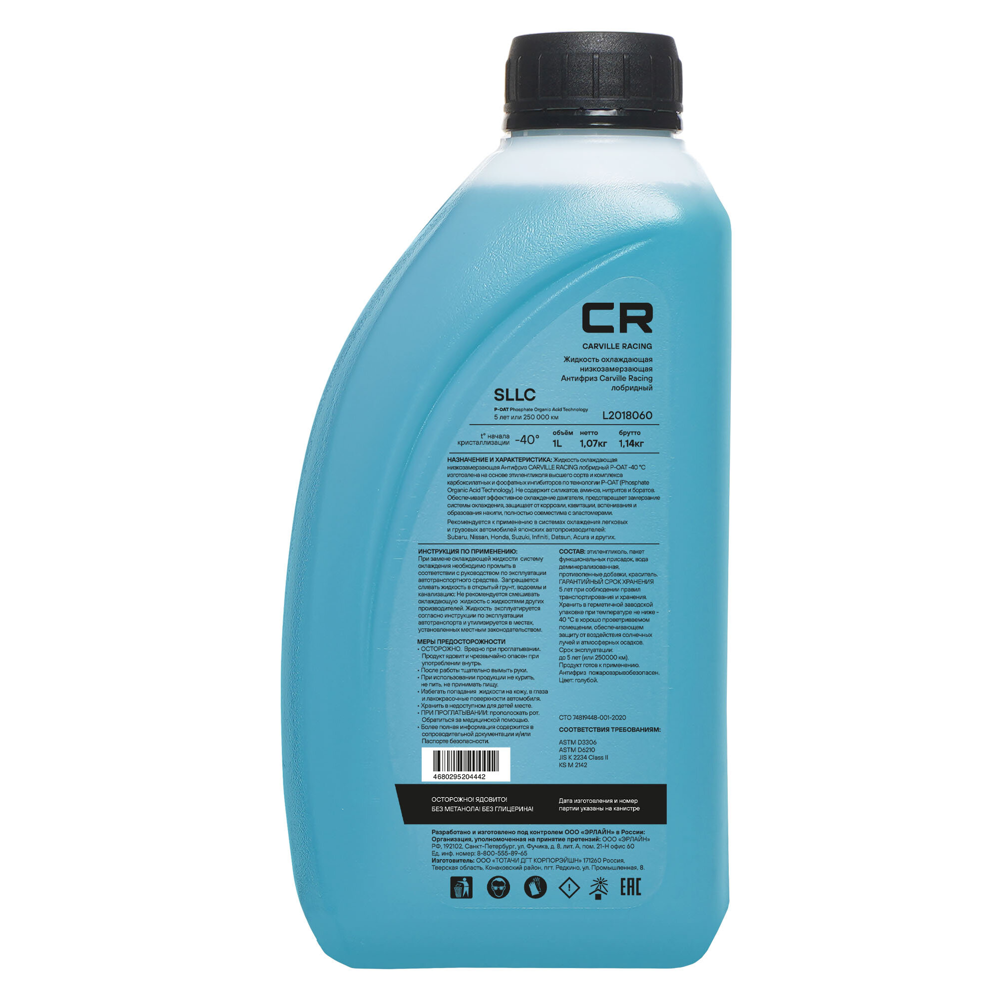 Антифриз готовый раствор CR для а м Subaru Nissan Honda P-OAT -40°С голубой 1л 1.07кг Carville Racing L2018060 интересное: