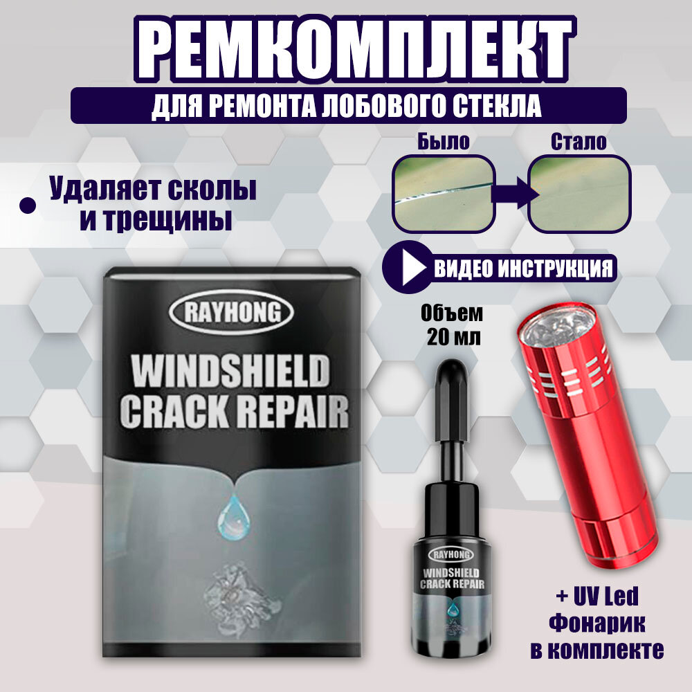 Комплект для ремонта автомобильных стекол с УФ-фонариком