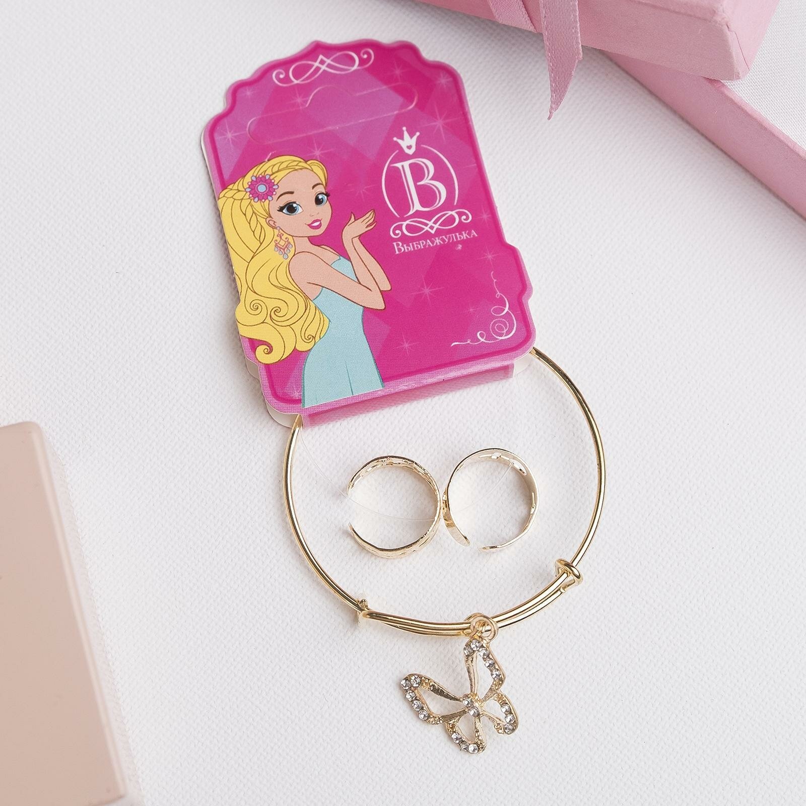 Набор «Выбражулька» 3 предмета: браслет, 2 кольца, бабочка, цвет белый в золоте интересное: