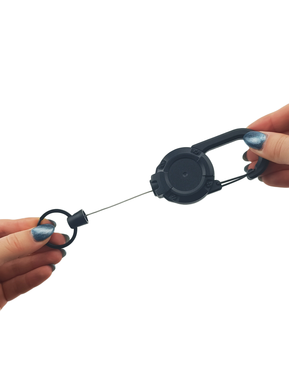 Брелок ретрактор с ремешком и карабином, пластик, черный