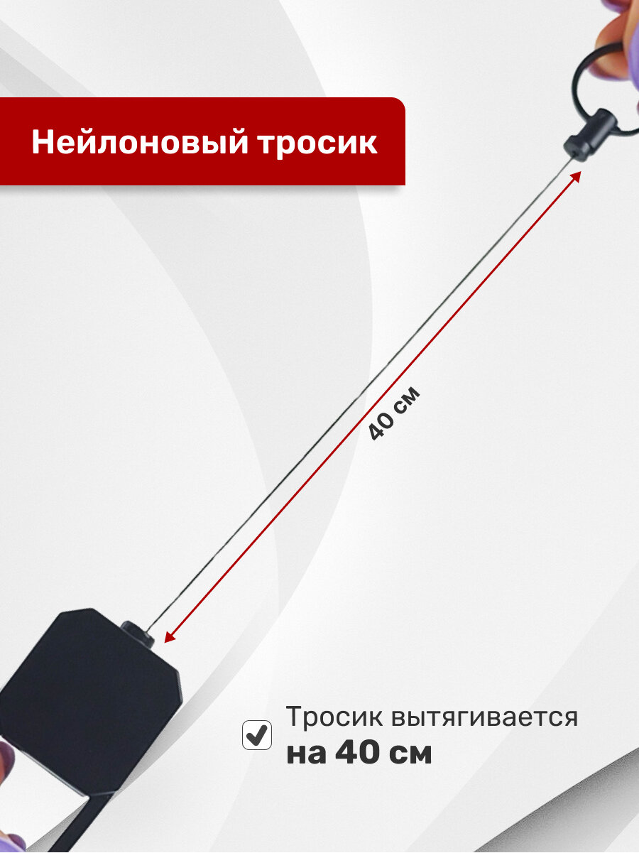 Брелок ретрактор с ремешком и карабином, пластик, черный
