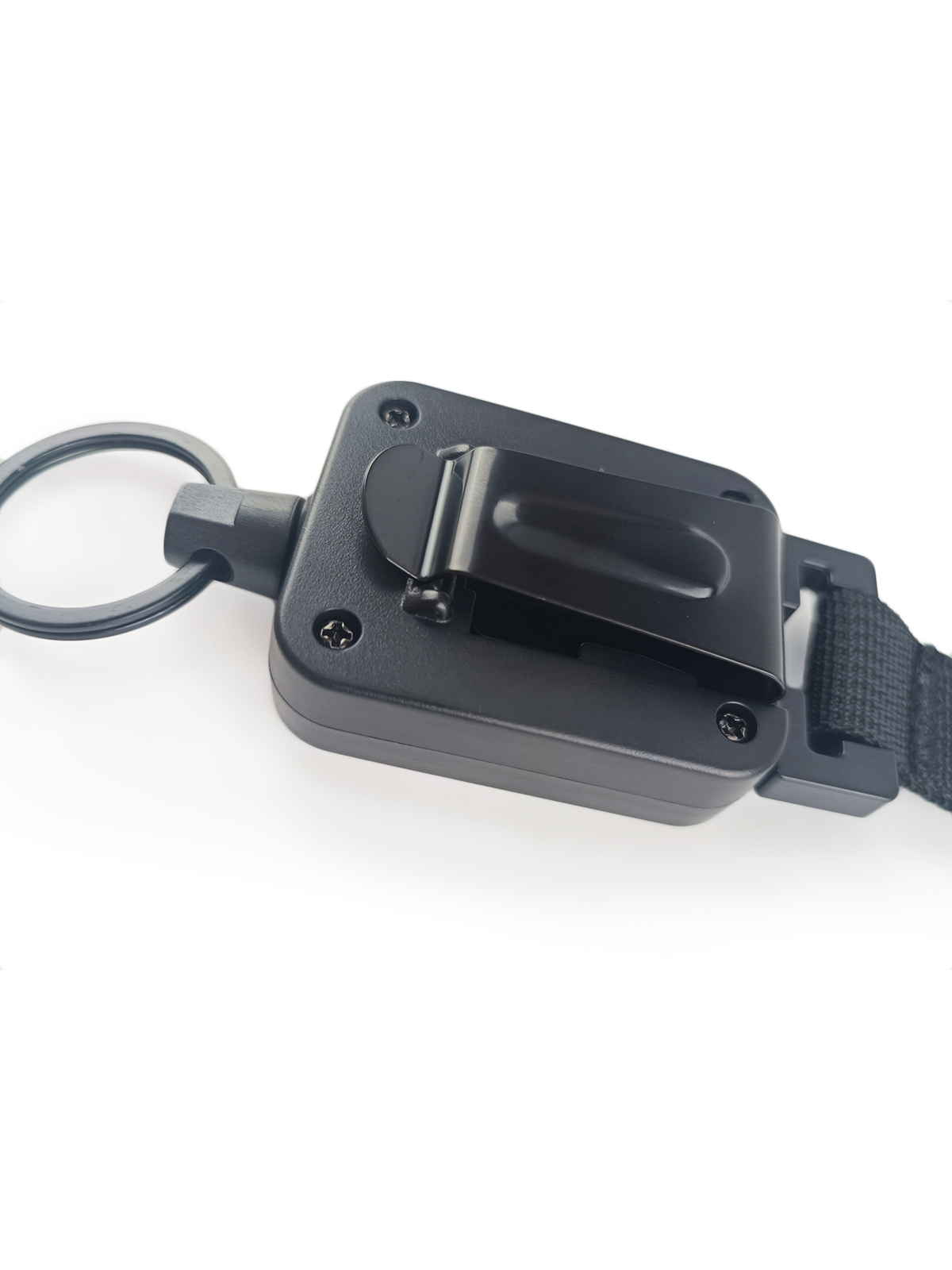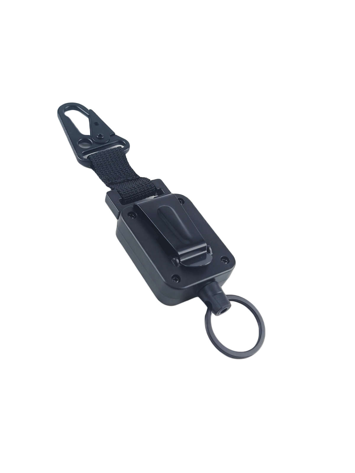 Брелок ретрактор с зажимом на ремень, метал, поворот на 360, черный
