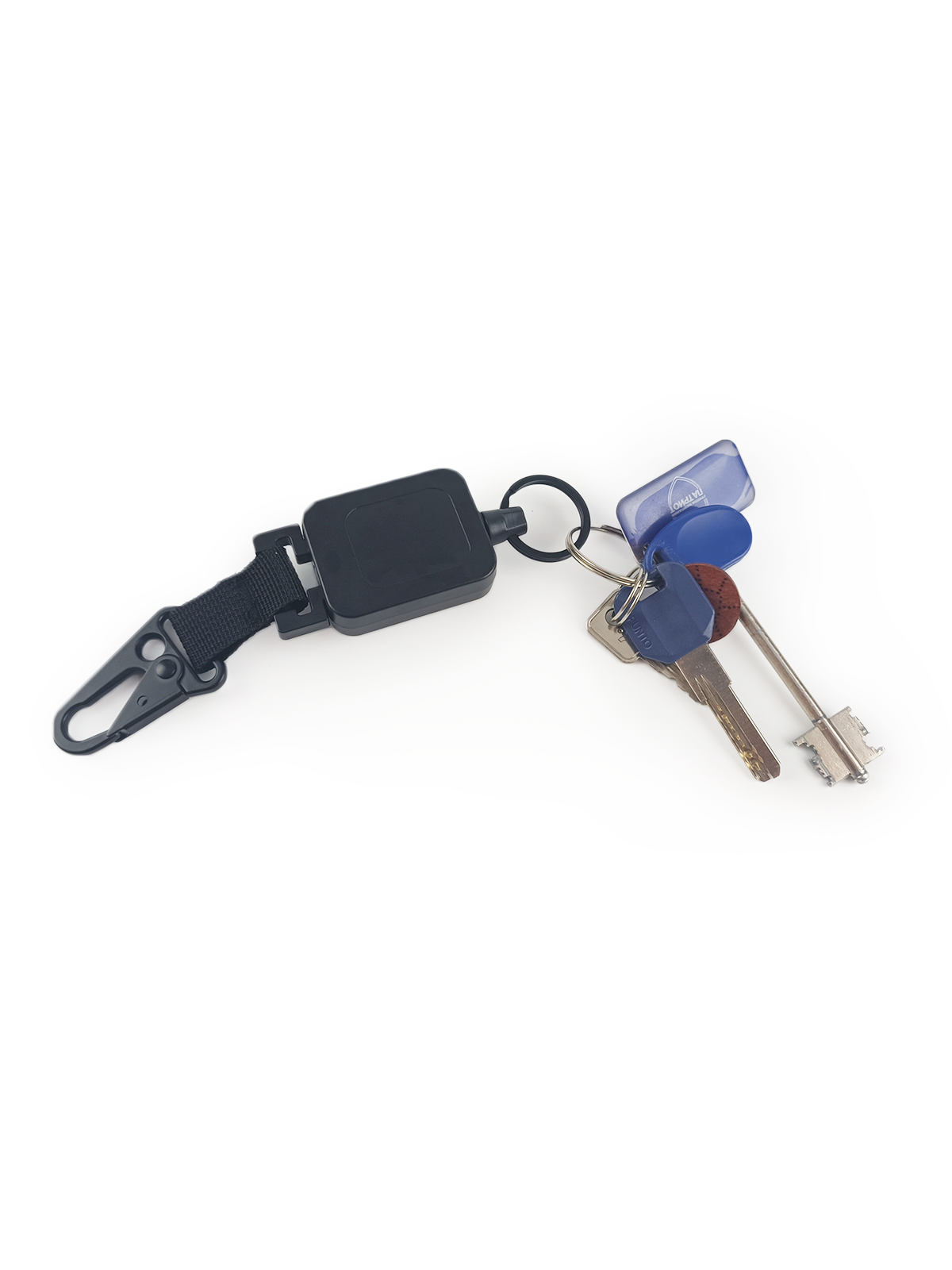 Купить Брелок ретрактор с ремешком и карабином, пластик, черный