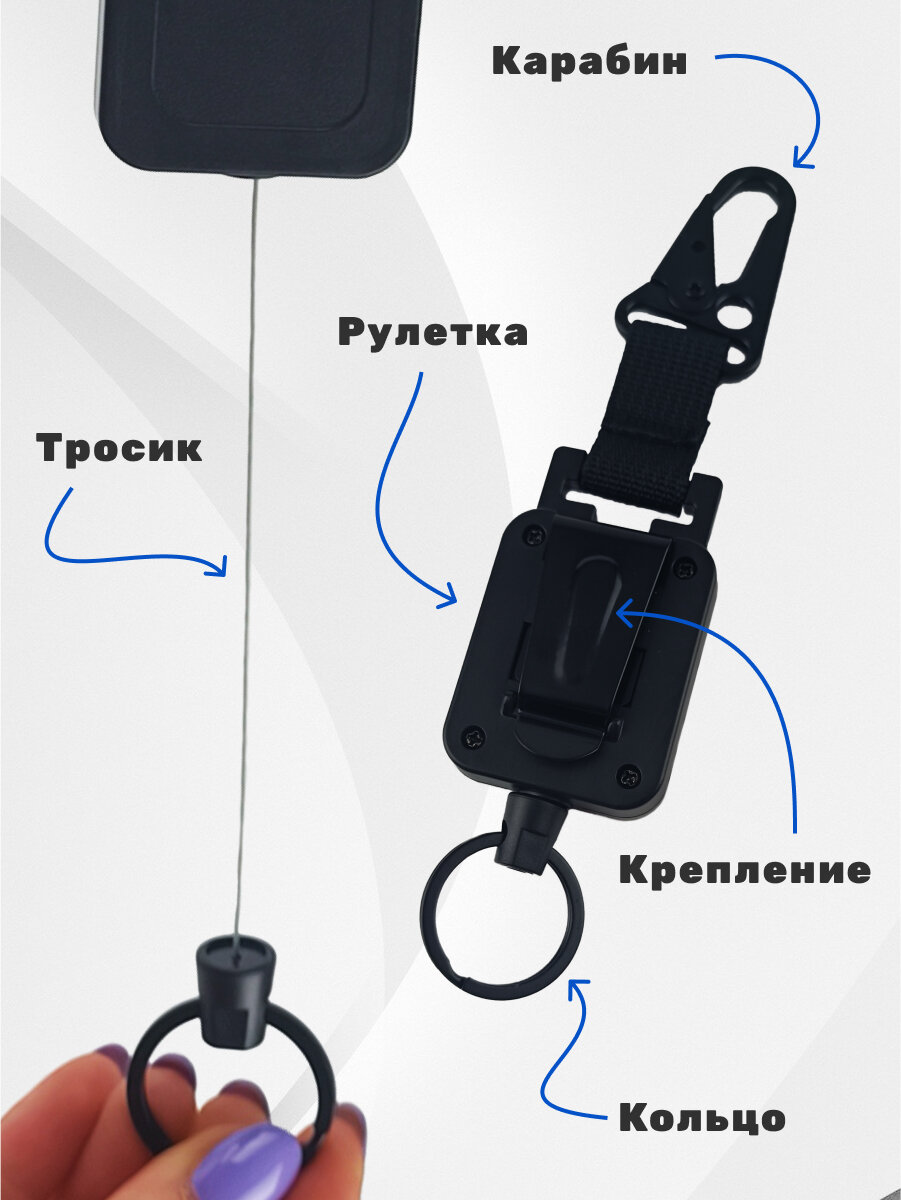 СохранитьБрелок ретрактор с ремешком и карабином, пластик, черный интересное: