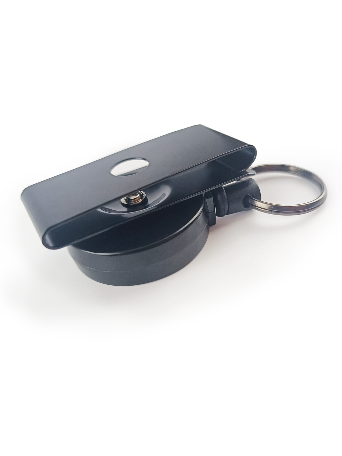 Купить Брелок ретрактор с зажимом на ремень, метал, поворот на 360, черный